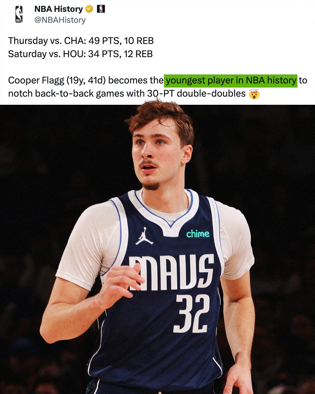 Cooper Flagg is almost halfway through his rookie year and already making history 🤯 (h/t NBAHistory / X)