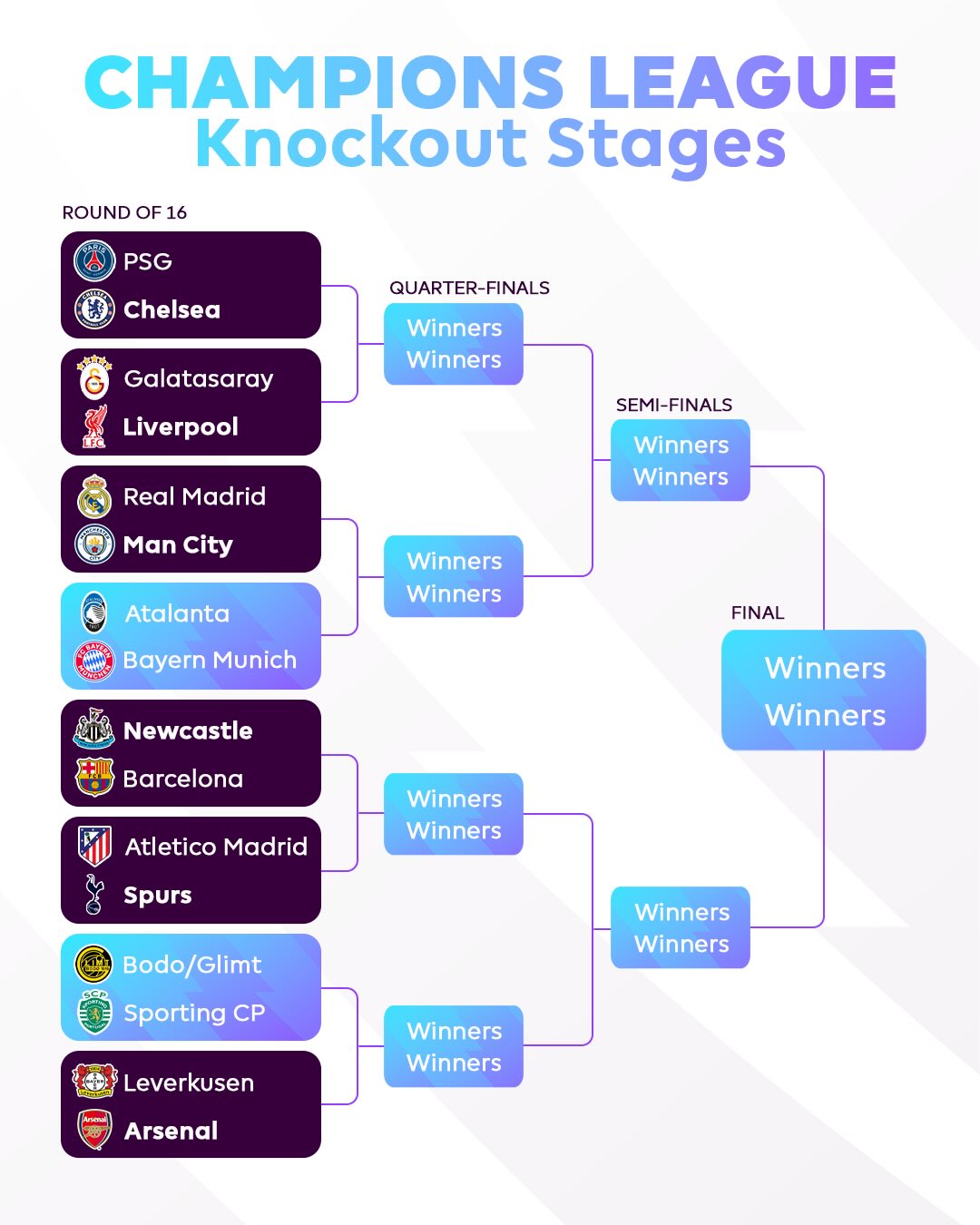 Six Premier League sides in action as the Champions League Round of 16 gets under way on Tuesday ๐