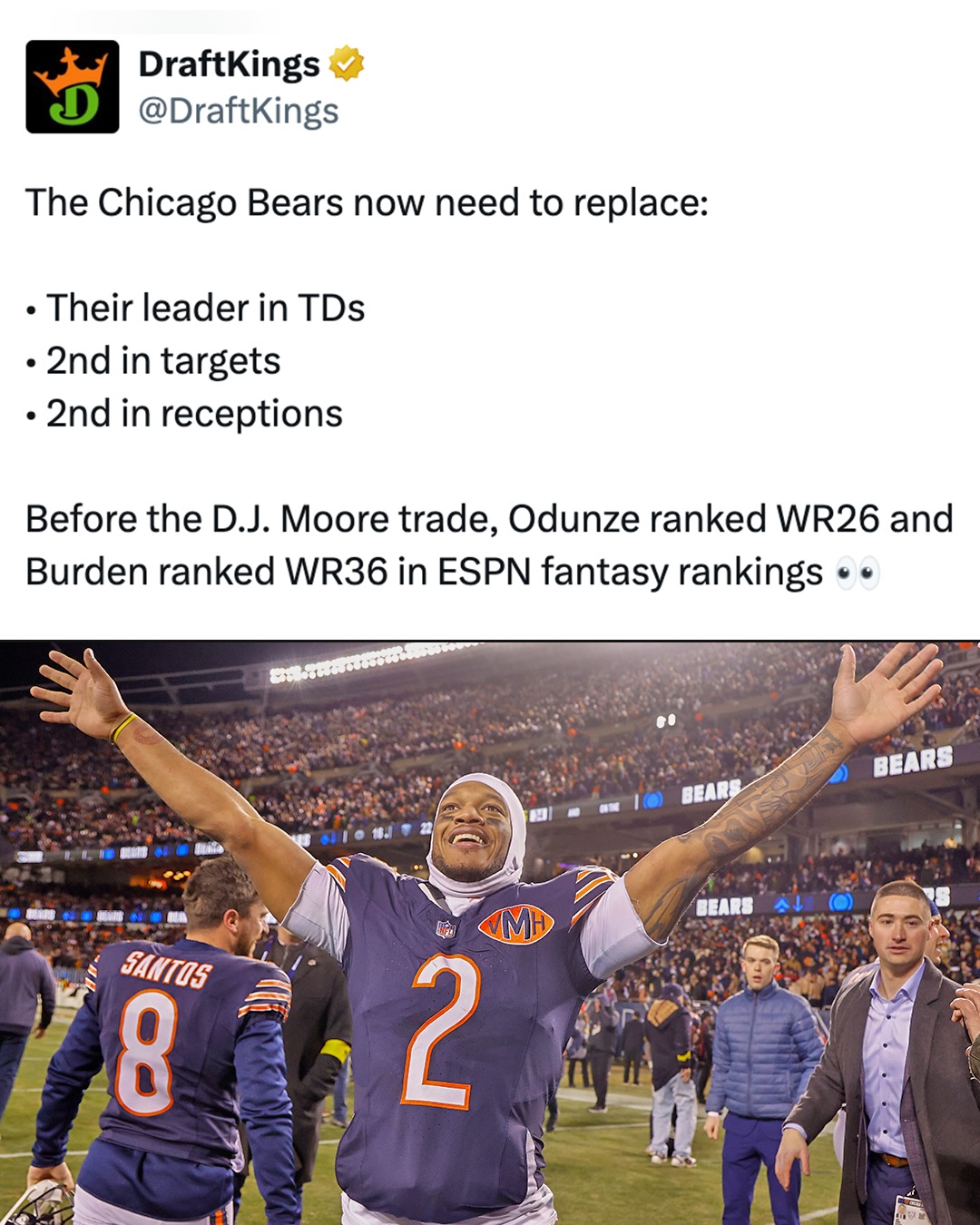 Word on the street is you better hop on the Burden & Odunze fantasy train for the 2026 season ๐