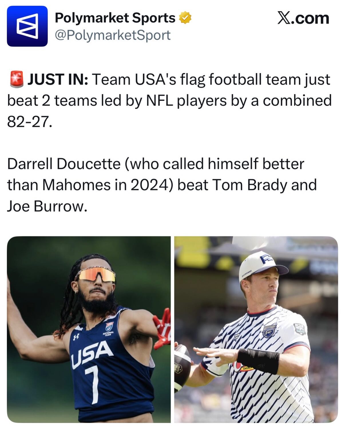 Darrell Doucette (who called himself better than Mahomes in 2024) beat Tom Brady and Joe Burrow.