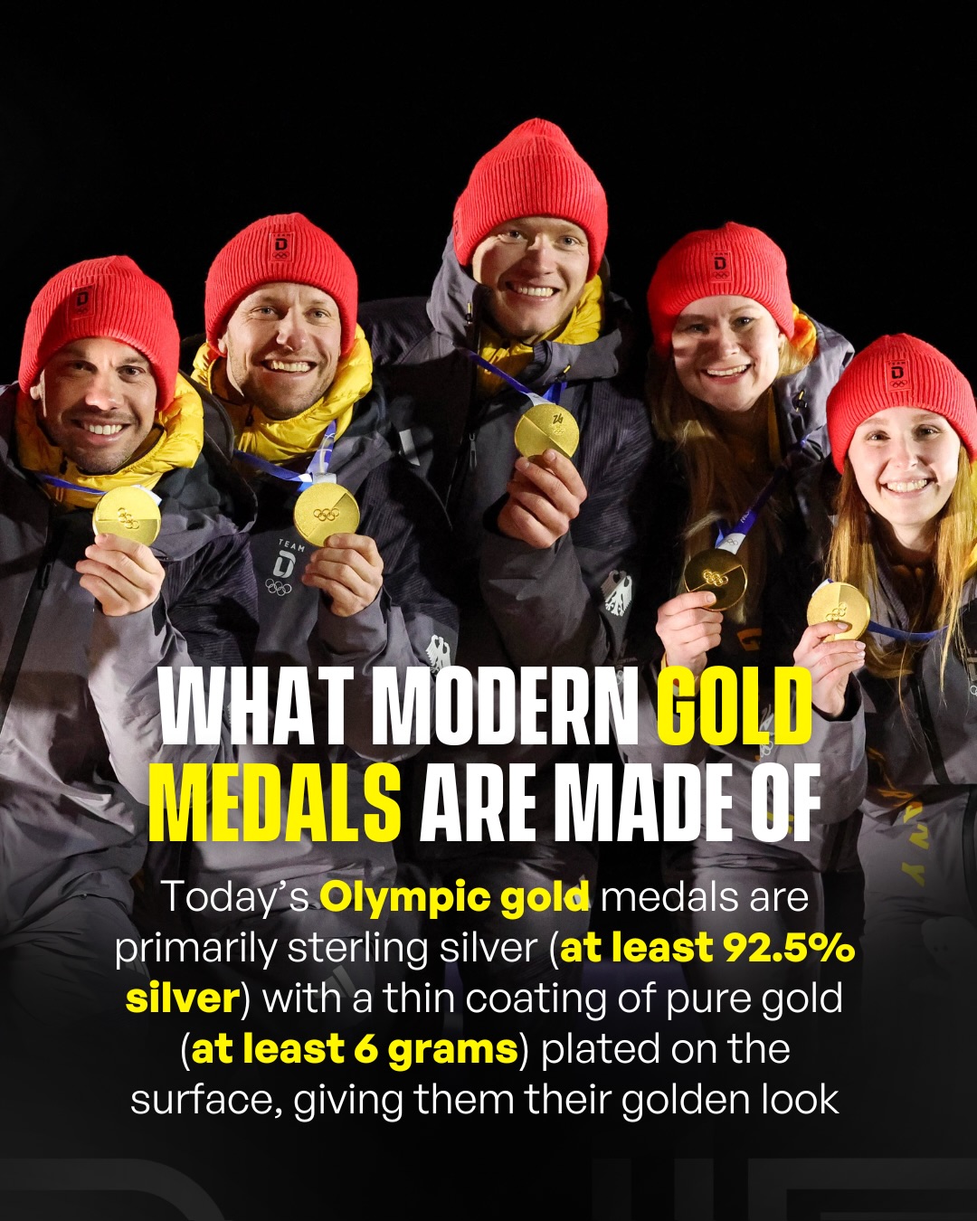 Modern Olympic gold medals aren’t actually solid gold anymore, they’re mostly silver plated with a thin layer of real gold.