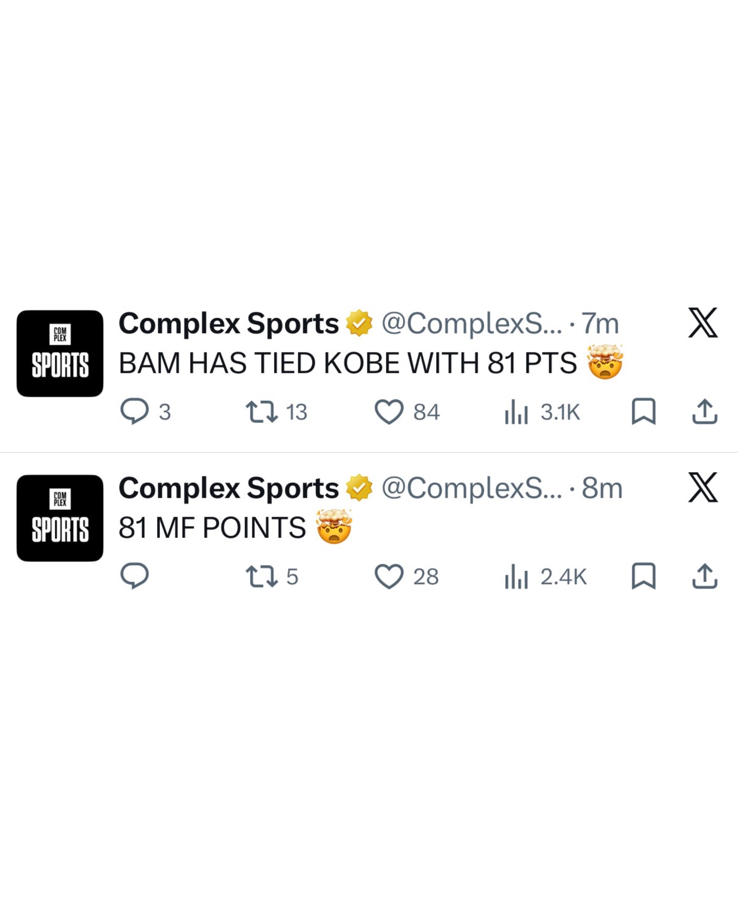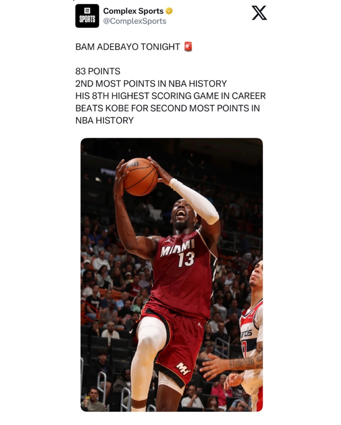 BAM CHOSE VIOLENCE TODAY After scoring 83 points Bam passes Kobe Bryant for the 2nd-most in NBA history ๐ฅ