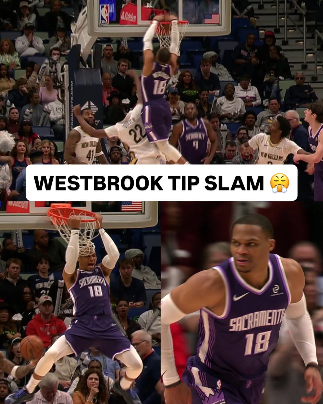@russwest44 climbs the ladder and throws the down the MONSTER putback slam 💥 SAC/NOP • NBA League Pass • <link in bio>