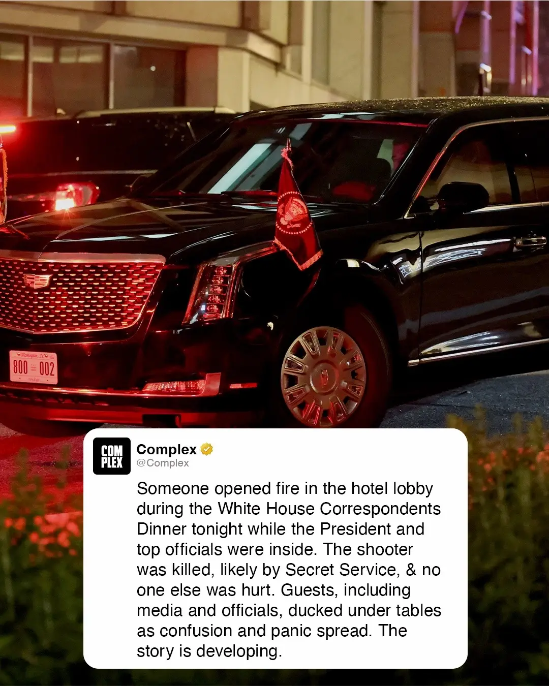 Reports of shots fired inside a hotel lobby during the White House Correspondents Dinner while the President & top officials were inside. The shooter was killed, no one else was hurt, & guests scrambled, hiding under tables as panic spread. The story is developing. [via/ NY Times]