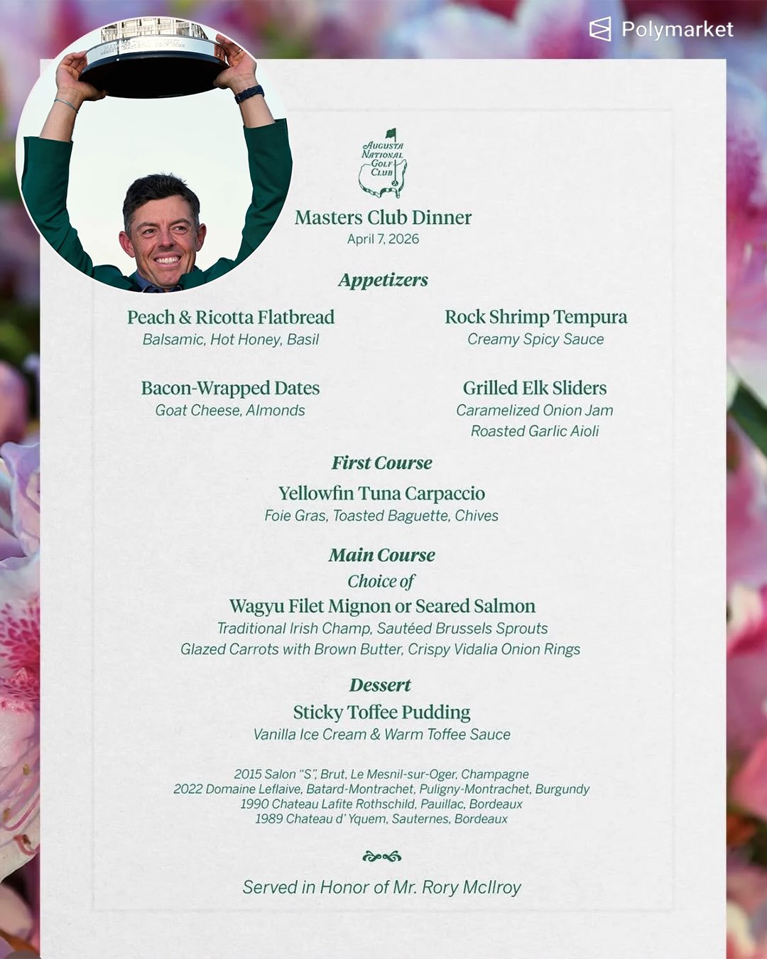 Rory McIlroy’s champions dinner is tonight