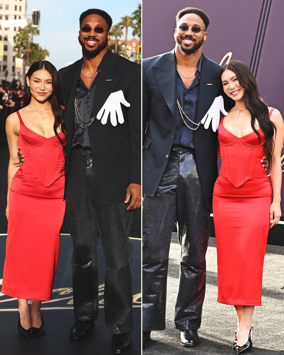Two-time NFL DPOY Myles Garrett & two-time Olympic gold medalist Chloe Kim shined on the "Michael" red carpet 🎬 🤩