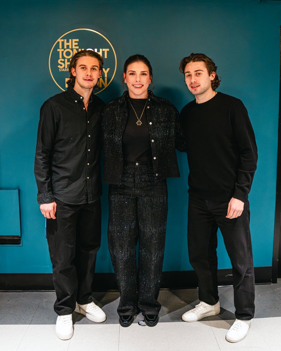 Jack Hughes, Quinn Hughes, and Hilary Knight join @jimmyfallon on @FallonTonight! Tune in at 11:35/10:35c! #FallonTonight