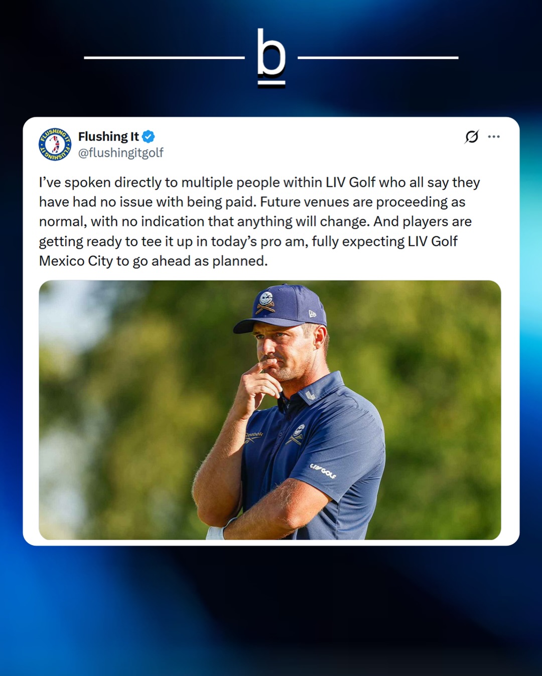 🗣️ - “I have some very good sources, and I’ve heard that other people have sources, that LIV is shutting down,” adding the situation was dire to the point where it may not even go through with the event that’s slated to kick off at Club de Golf Chapultepec outside of Mexico City on Thursday.