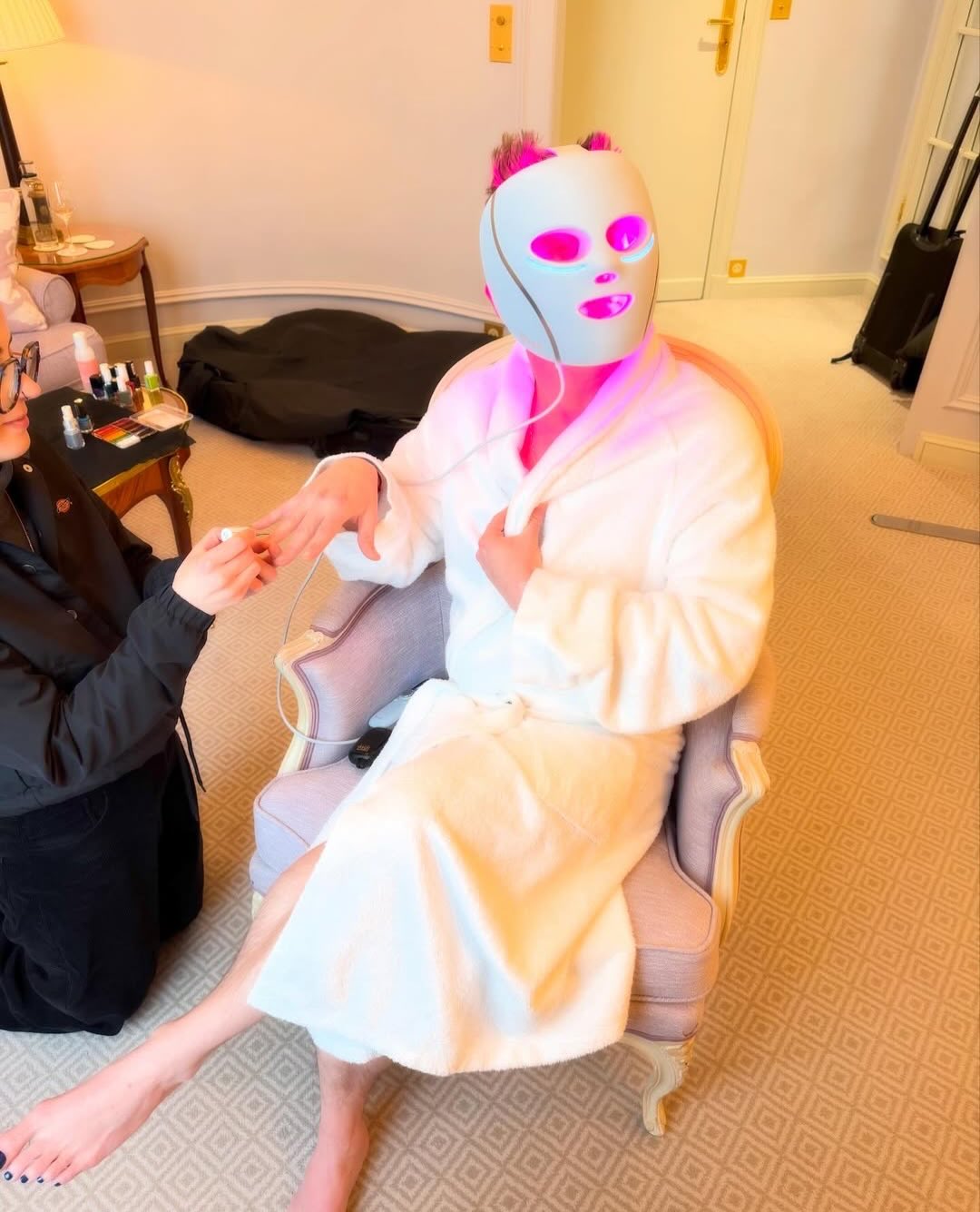 He also turned heads at Jean Paul Gaultier, going barefoot while chatting and comparing blue nail polish with singer Tyla.