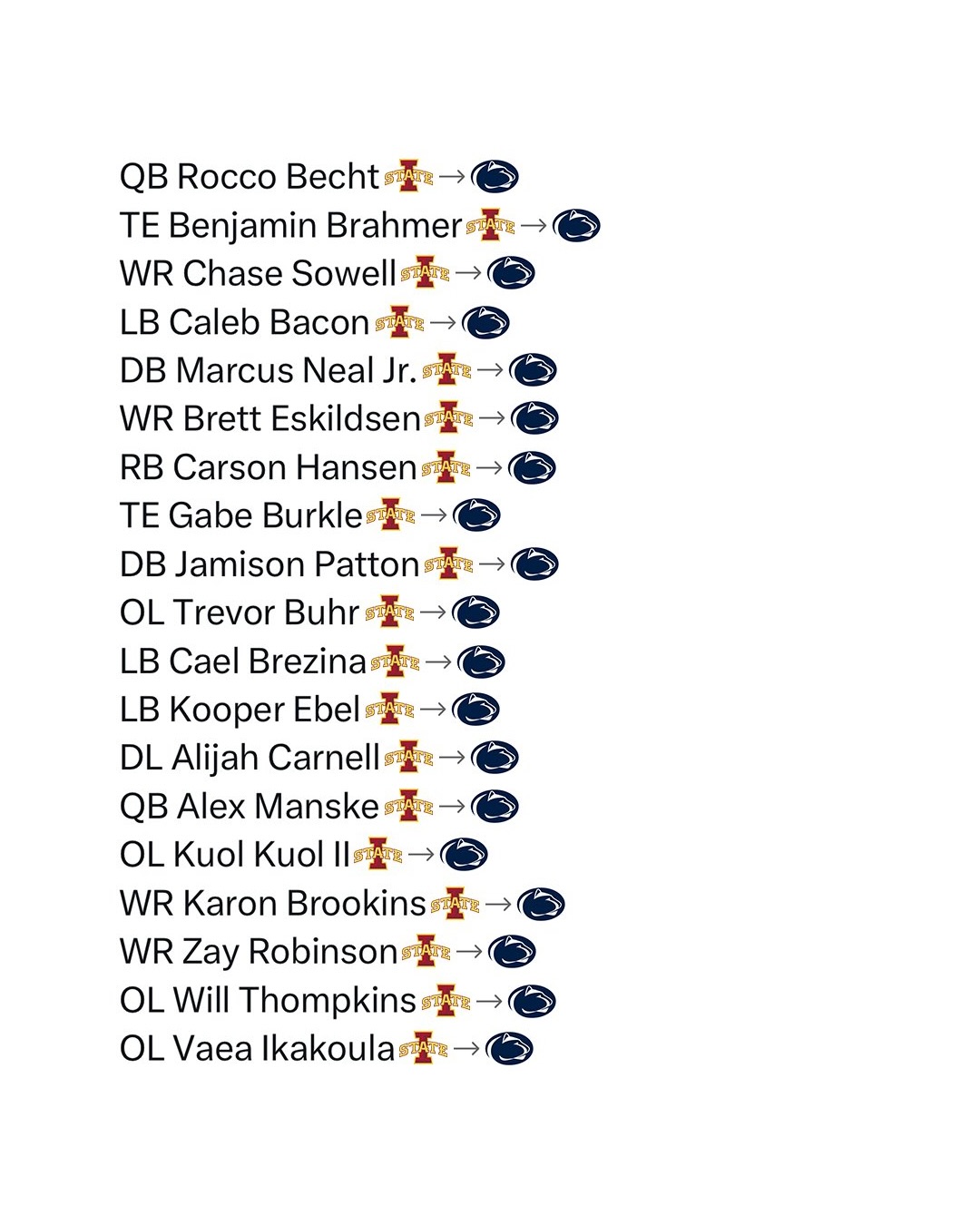 Penn State has taken a whopping NINETEEN players from Iowa State after hiring the Cyclone’s head coach, Matt Campbell. 🤯