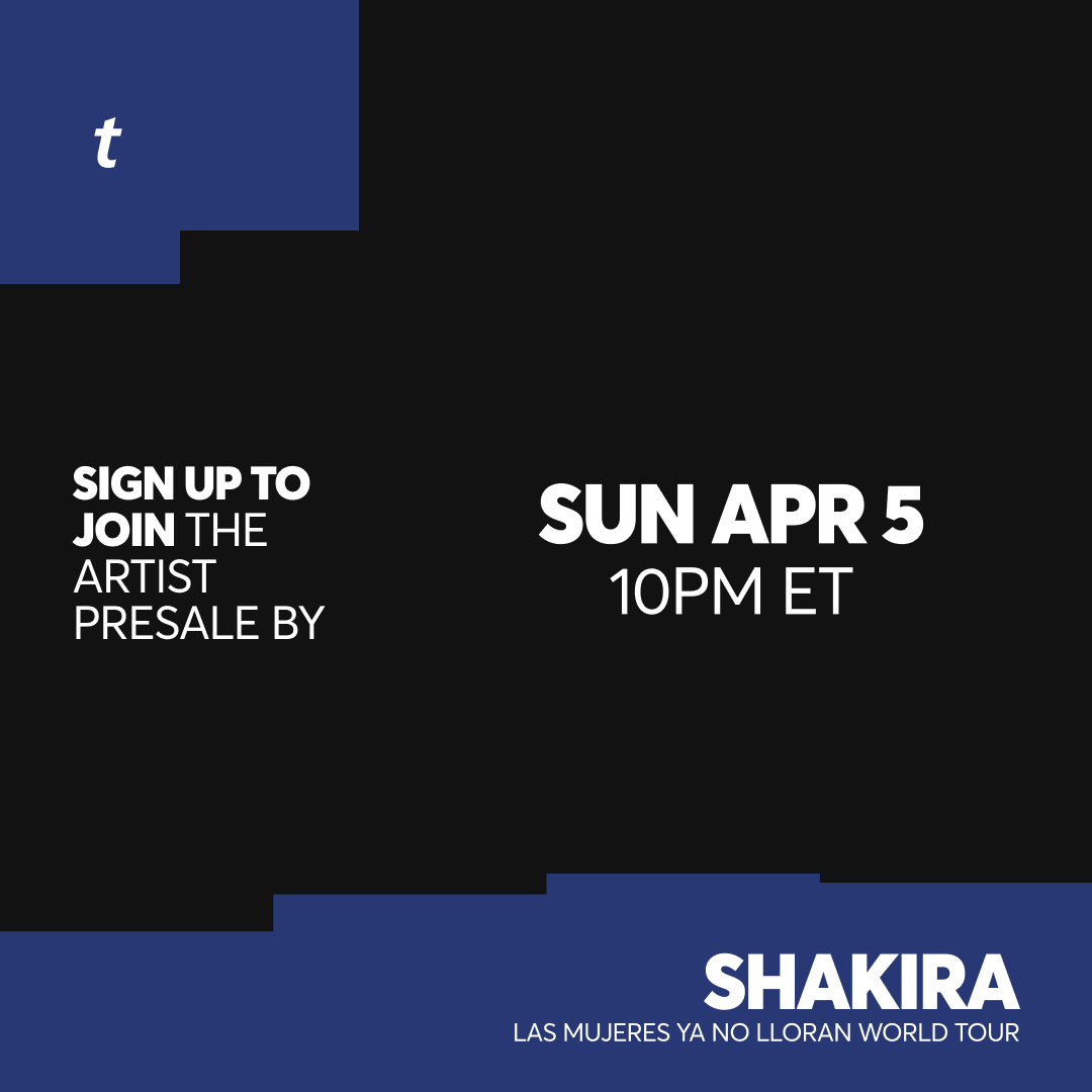 Whenever, wherever, we’re there! @shakira just announced the LAS MUJERES YA NO LLORAN WORLD TOUR continues this Summer with a special limited run of U.S. dates! 💃 ⏰ Sign up to join the Artist Presale by Sun, Apr 5th at 10PM ET. Here’s what to know so you’re ready when tickets drop. ⬇️ 🎫: t.co/WY2JCFAOVu