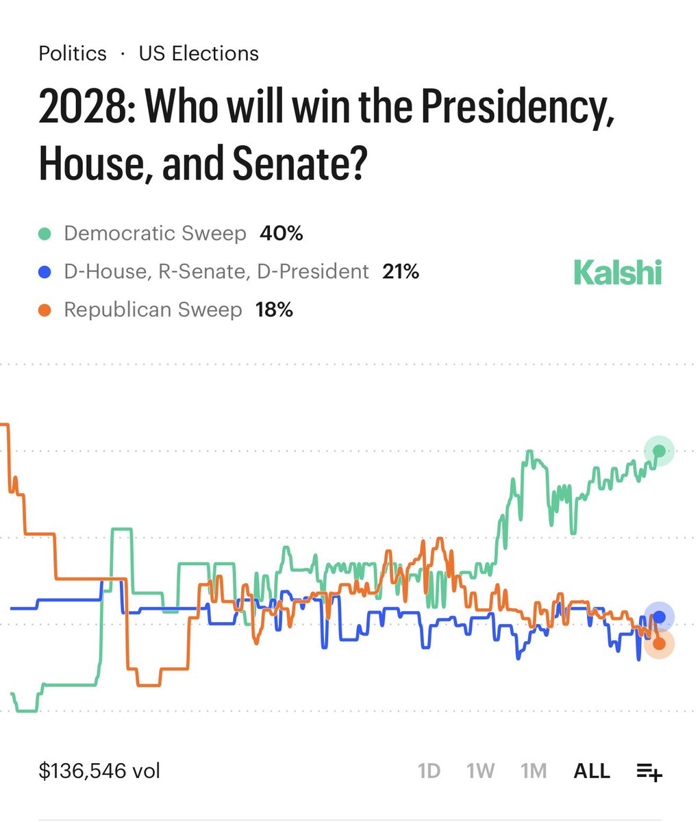 BREAKING: 40% chance Democrats sweep the Presidency, House, and Senate - an all time high.