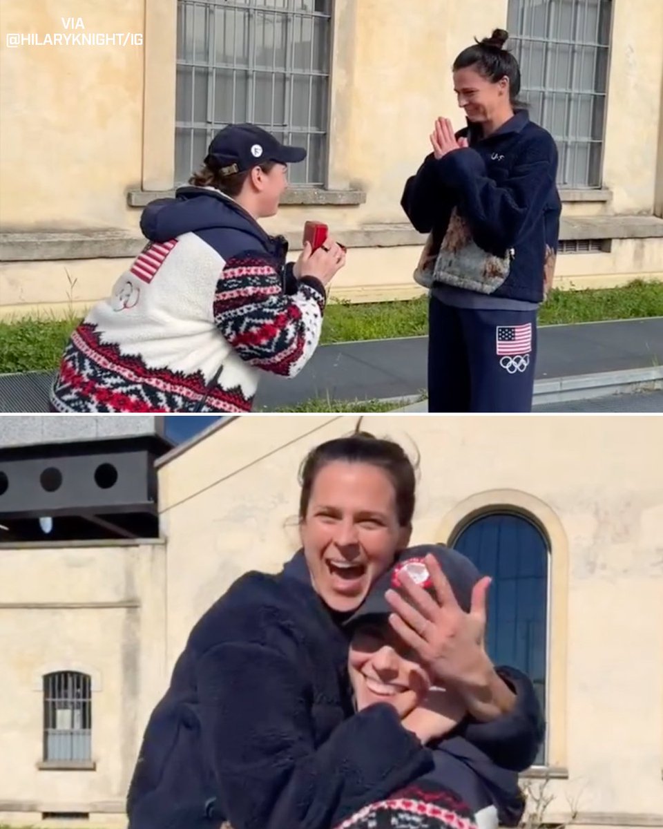 Team USA women's hockey star Hilary Knight got engaged to partner Brittany Bowe, also an Olympian at the #WinterOlympics 🥹💍