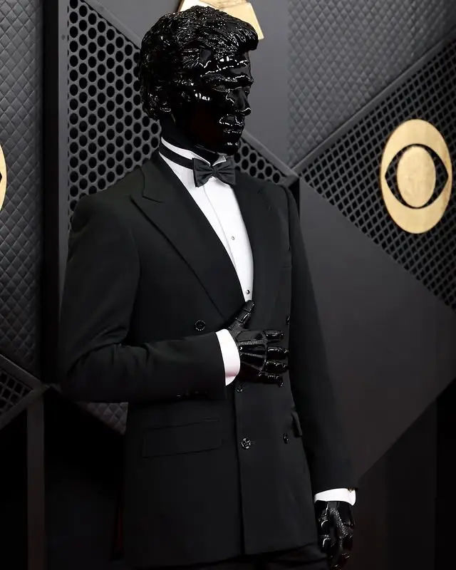 Known for his signature high gloss black sci fi inspired face mask, French DJ and music producer Gesaffelstein kept his famous futuristic look at the 2026 Grammys ๐ฅ #grammys #gesaffelstein #fitcheck #streetwear #futuristic #hypebeast