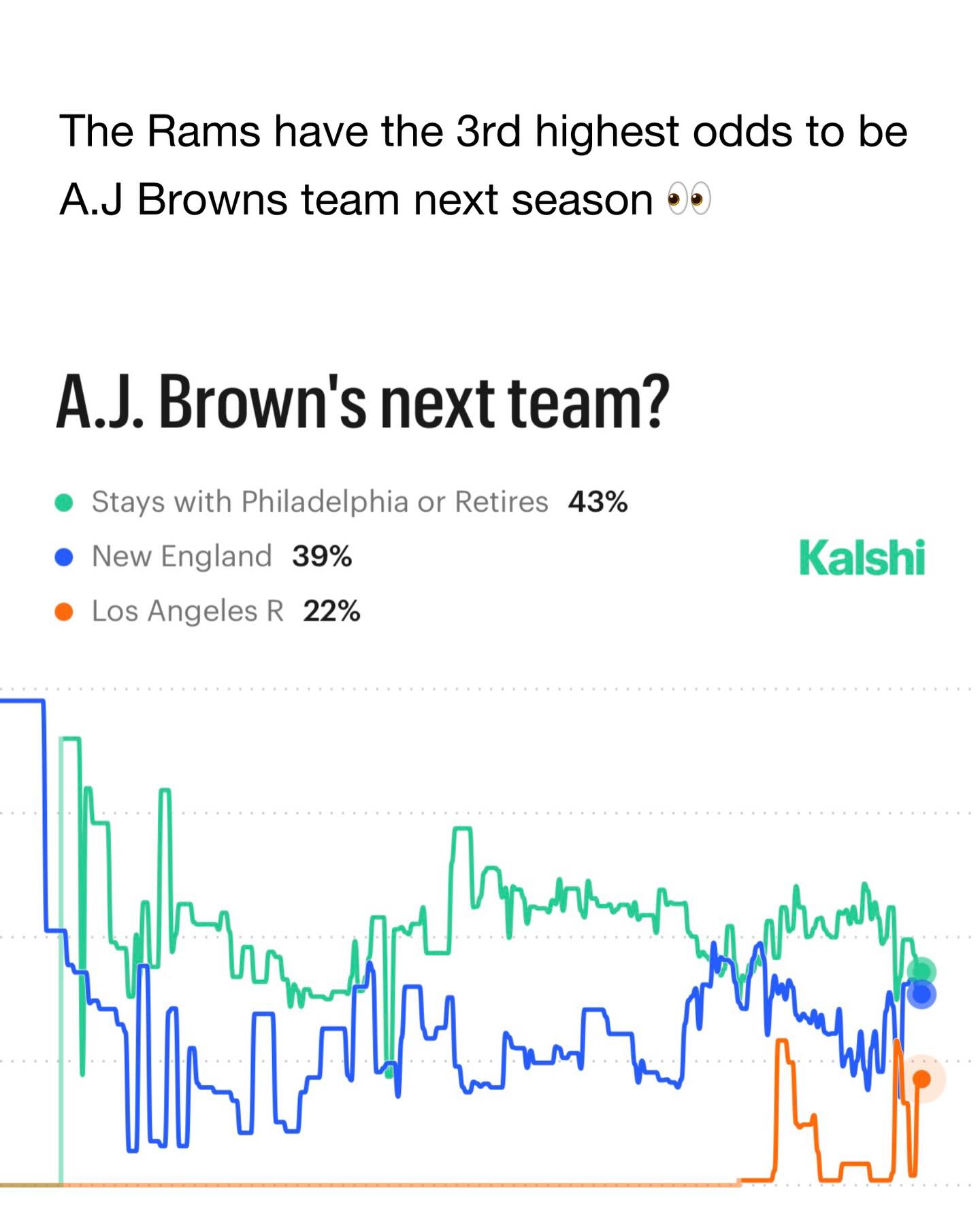 A.J. Brown is up to 22% odds to be a Los Angeles Ram next season on Kalshi