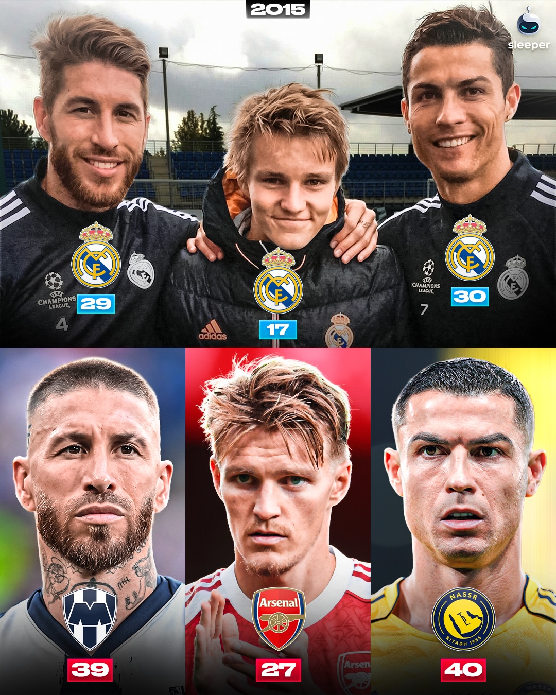 In 2015, Martin Odegaard took a photo with Cristiano Ronaldo and Sergio Ramos whilst training at Real Madrid… 🔮🤝