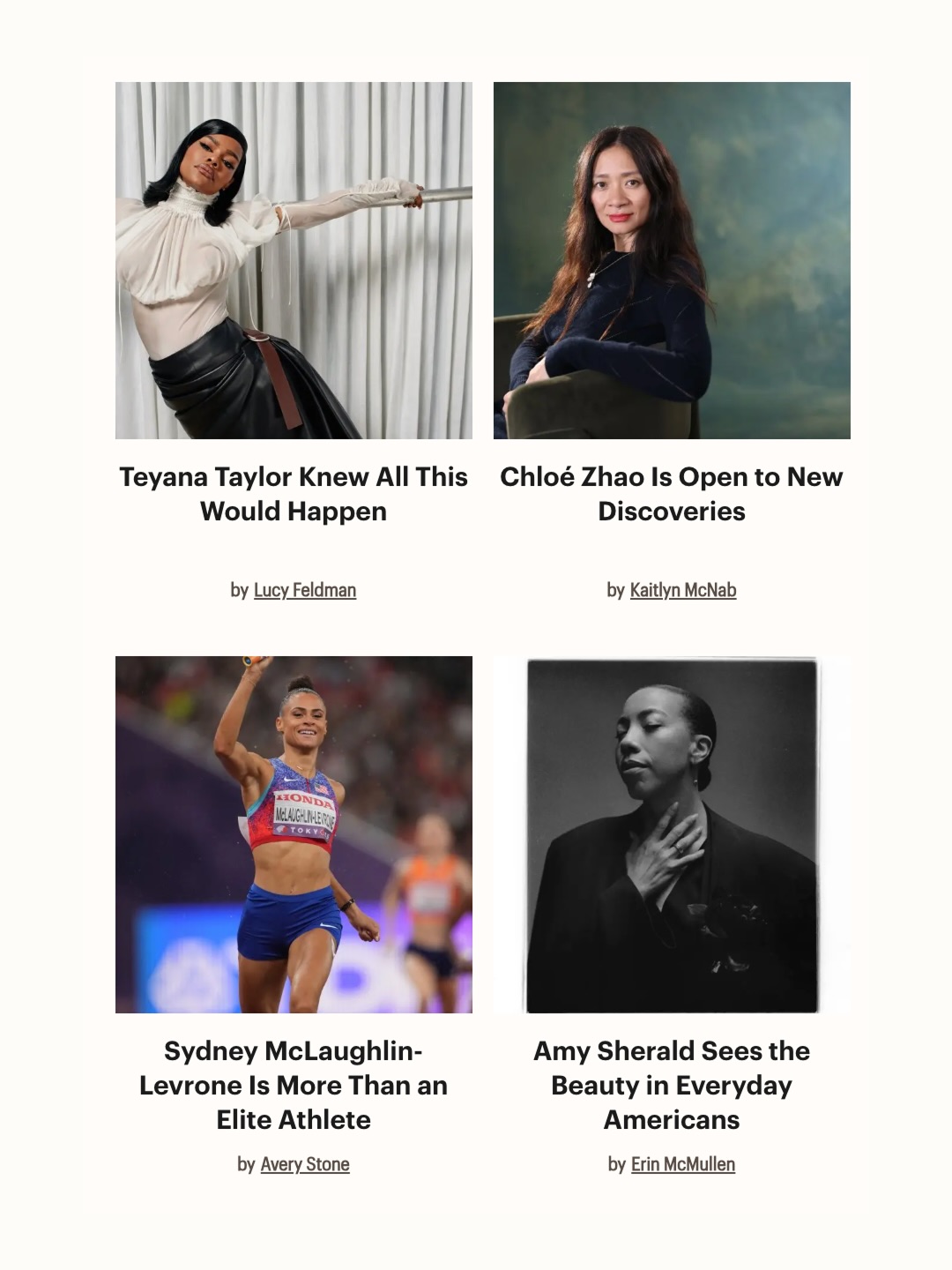 Congratulations to the 15 incredible TIME Women of the Year who are making a global impact through their work, example, and their advocacy: Teyana Taylor, Chloé Zhao, Sydney McLaughlin-Levrone, Amy Sherald, Mariska Hargitay, Reshma Saujani, Sister Norma Pimentel, Brandi Carlile, Lucy Liu, Mahnoor Omer, Reshma Kewalramani, Isata Dumbuya, Safeena Husain, Kecia Steelman, and Sheryl Lee Ralph.