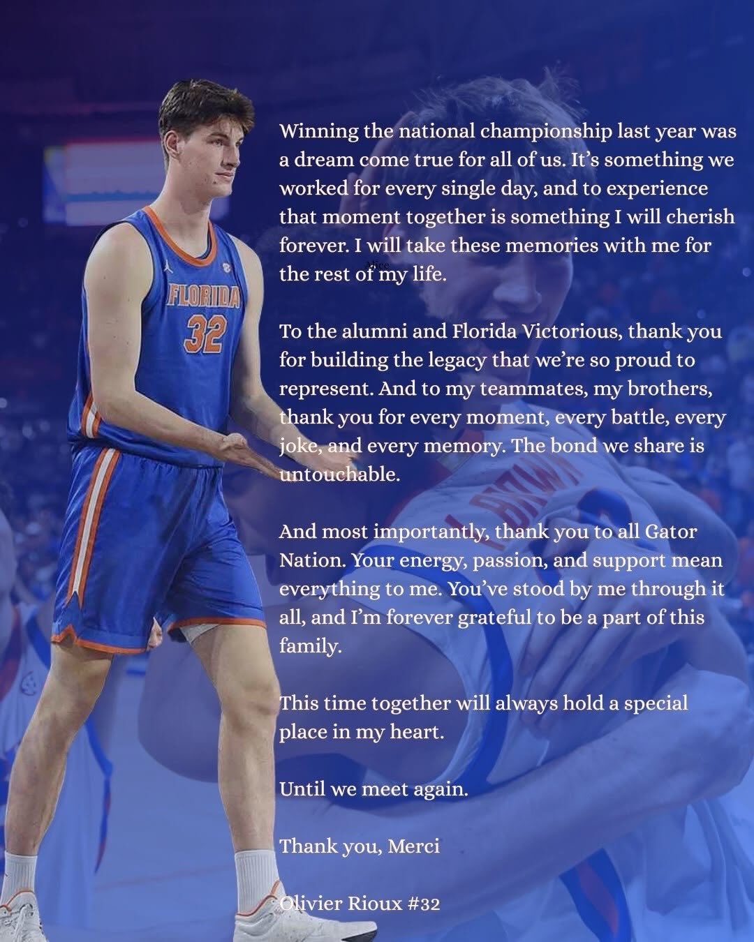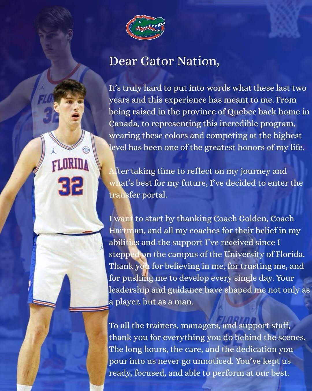 Canadian big man Olivier Rioux announces his intention to leave Florida and enter the transfer portal.