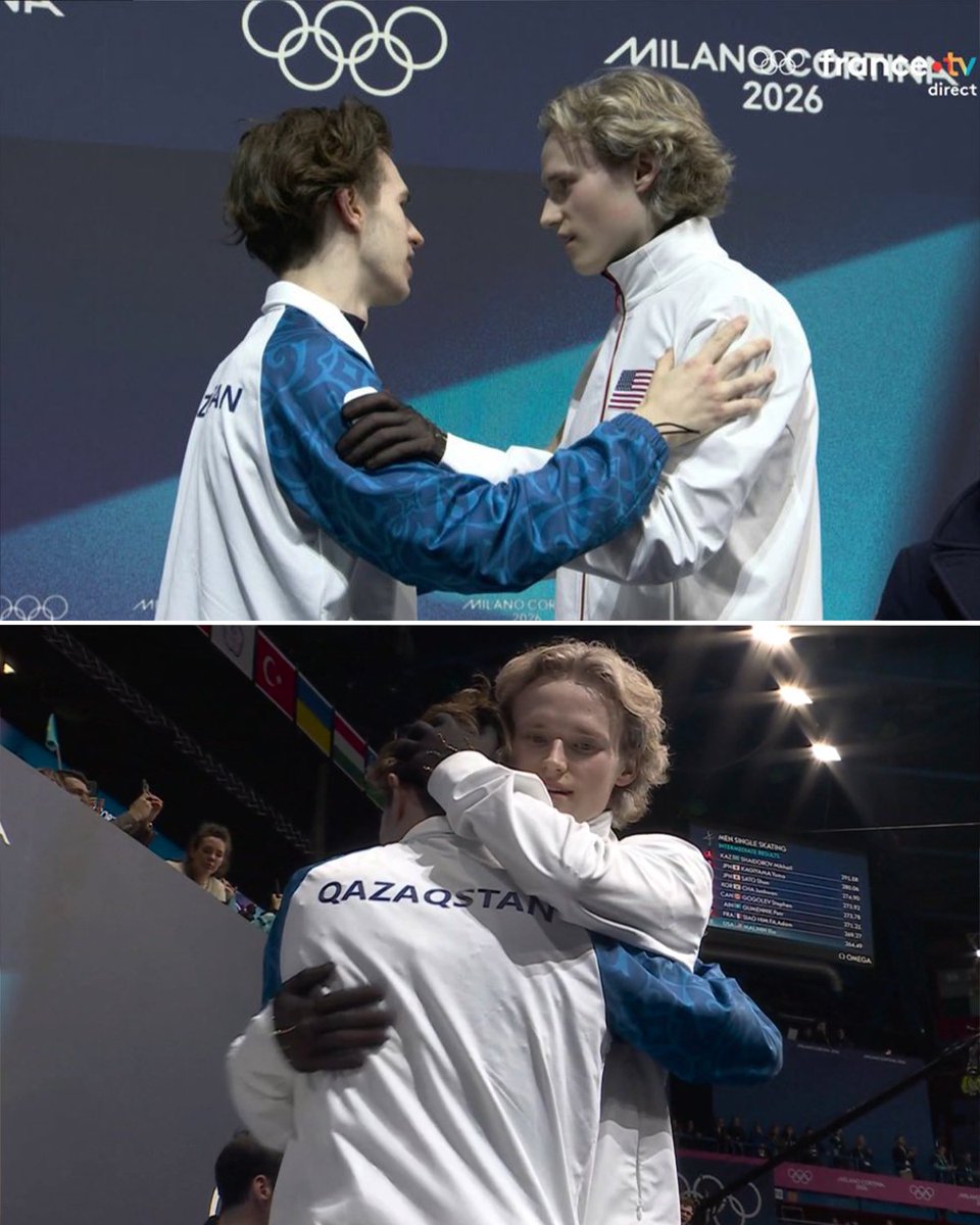 Even after a disappointing showing, Ilia Malinin made sure to go right over to Mikhail Shaidorov to congratulate him on his gold medal performance 🥹 Pure class 👏