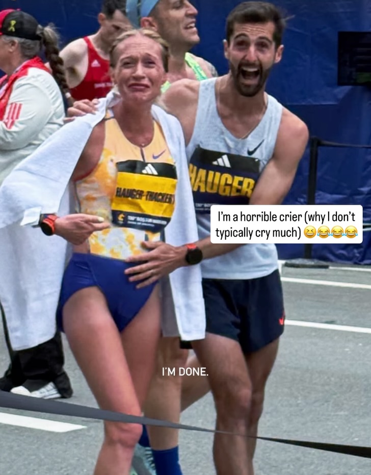 Calli Hauger-Thackery just completed the Boston Marathon in 2:43 (WILD), navigating a trapped nerve early in the race and multiple stops along the way, but still finished strong.