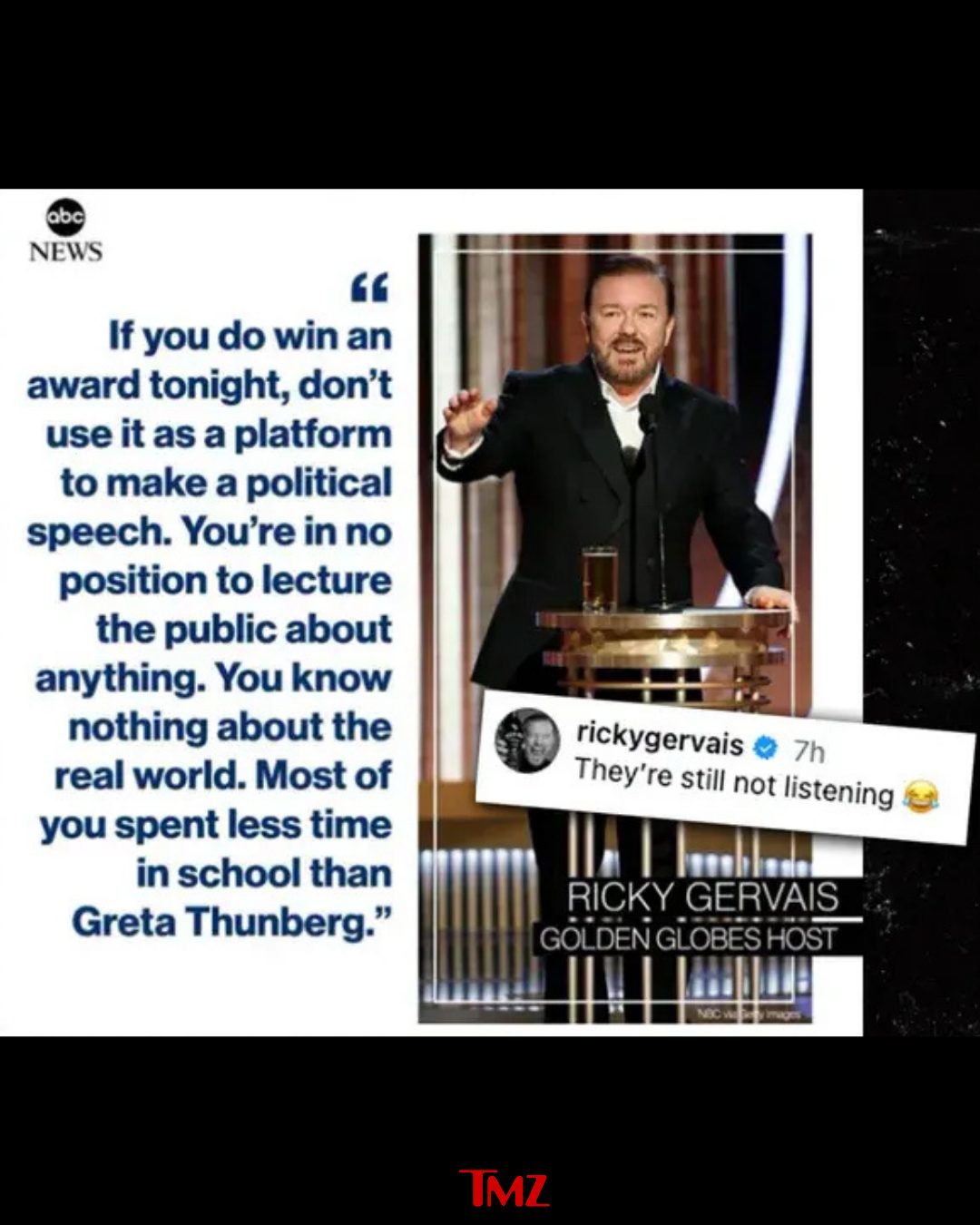 Last night's Grammy Awards was a nightmare for Ricky Gervais ... at least judging by his stance on political acceptance speeches. ๐๐๐