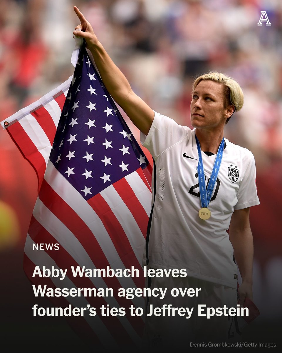 World Cup winner and 2x Olympic gold medalist Abby Wambach is ending her 20-year association with the agency led by Casey Wasserman after the Epstein files documented the founder's ties to Jeffrey Epstein and Ghislaine Maxwell. Wambach is the first athlete to publicly cut ties with the agency, which is one of the biggest in the world, with clients spanning the worlds of sports and entertainment. t.co/EJaG1fs9vM