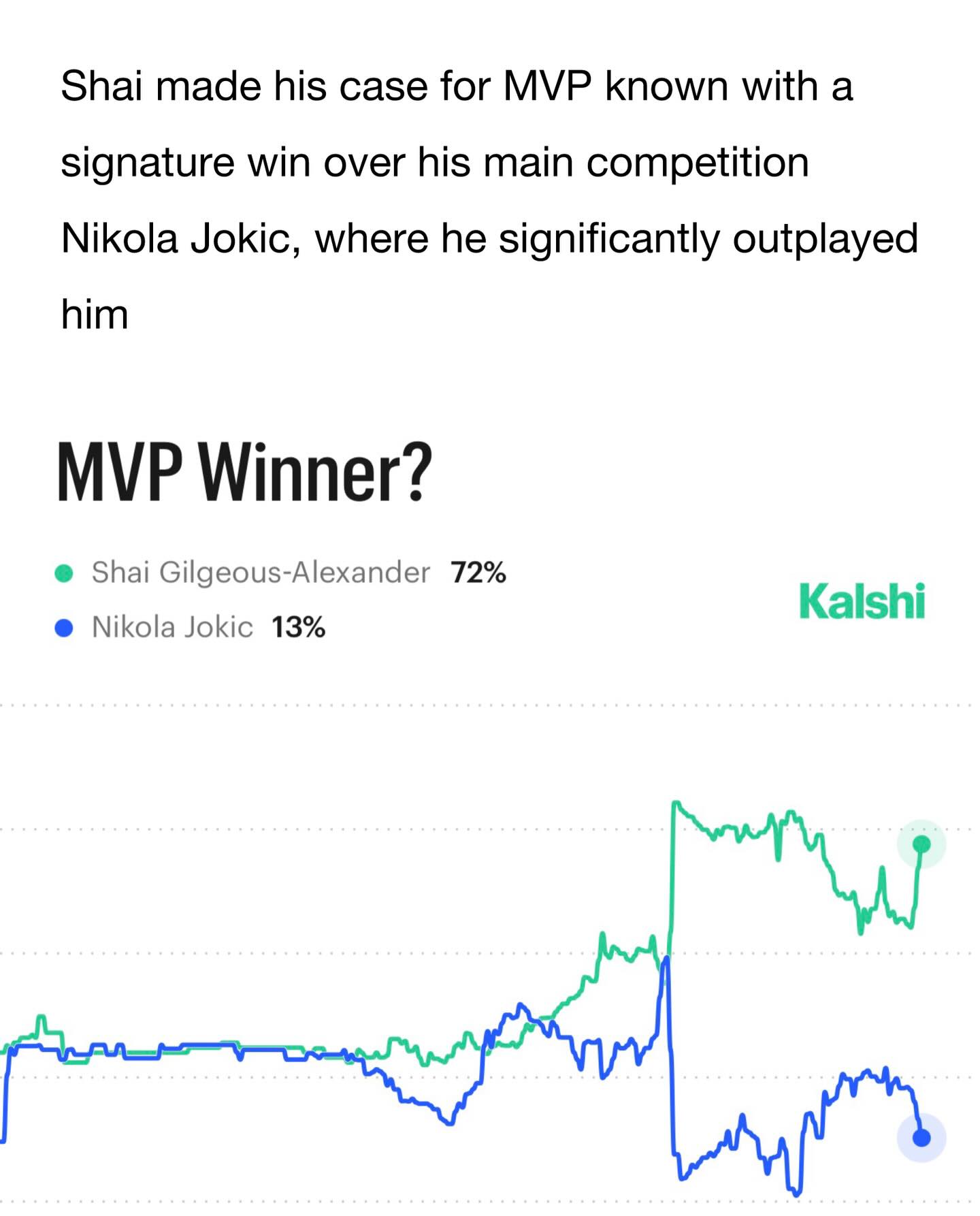 In his first game back from injury, SGA dropped 36/3/9 helping OKC to a huge W over the Nuggets, and his main competition for MVP - Nikola Jokic