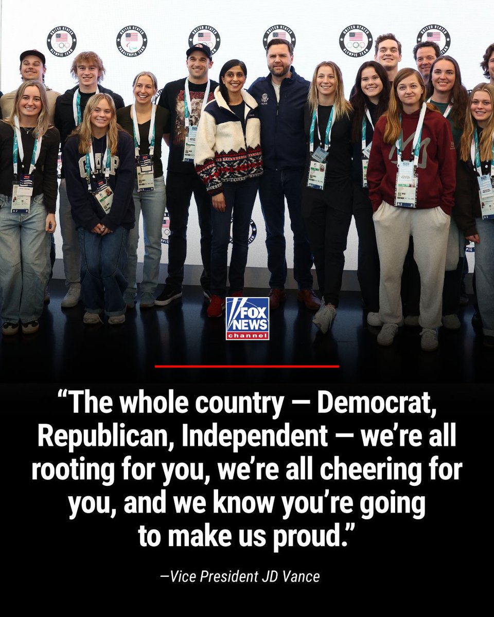 NEW: Vice President Vance and the Second Family meet with Team USA in Milan, Italy, ahead of the 2026 Winter Olympics. “Everybody’s rooting for you. Everybody’s cheering for you. We’re so excited to be here.”