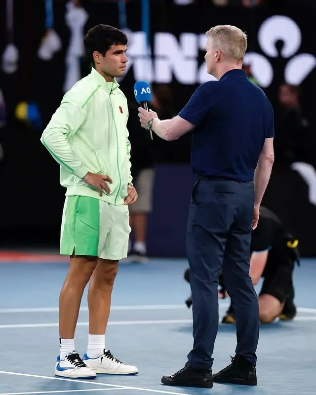 After his 2026 Australian Open semifinal win, Carlos Alcaraz rocked Travis Scott x Air Jordan 1 Low Fragments ‼️ #carlosalcaraz #australianopen #travisscott #hypebeast #sneakerhead #airjordan1 #cactusjack
