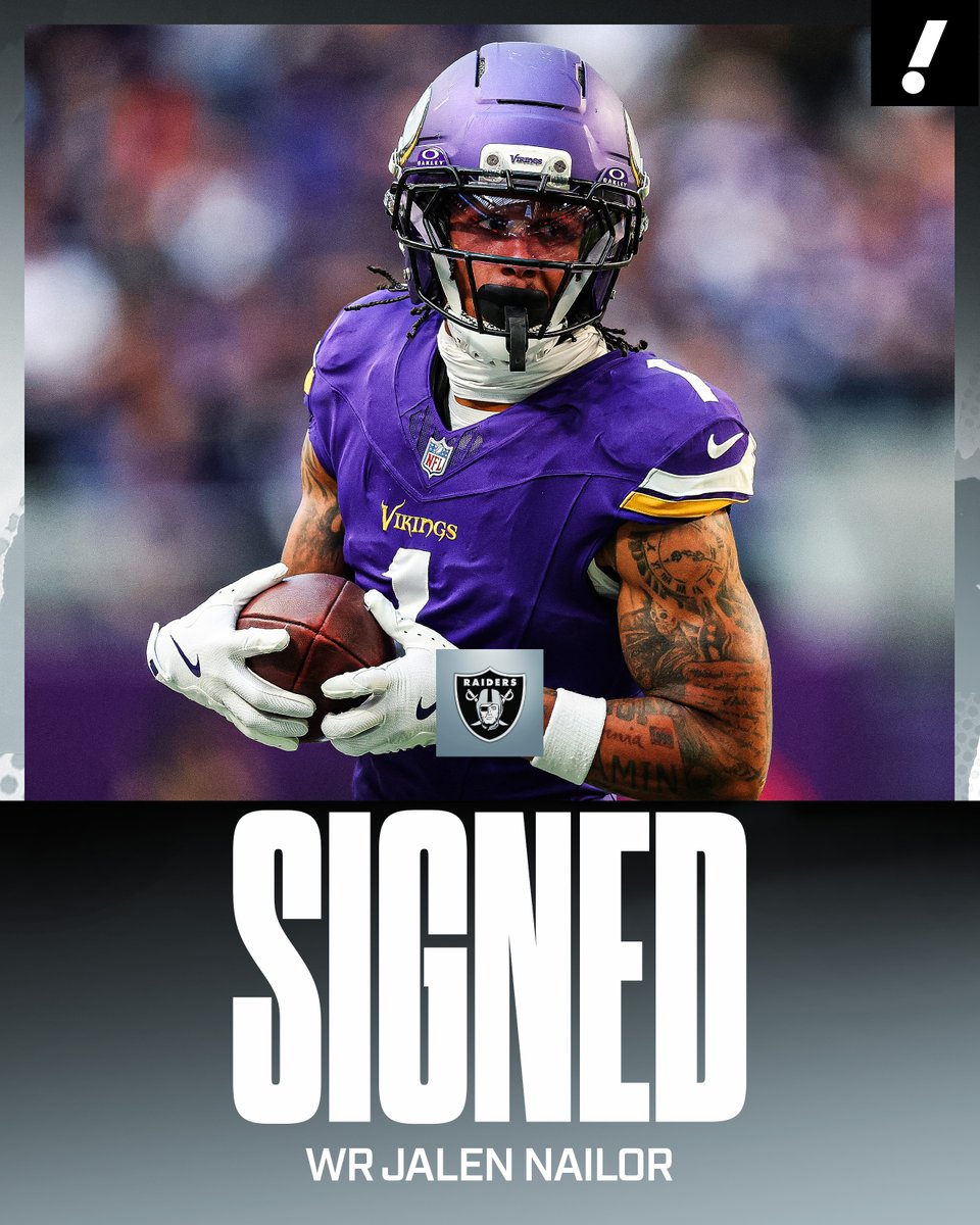 The Raiders and former Vikings WR Jalen Nailor have agreed on a three-year, $35 million deal including $23 million guaranteed, per multiple reports. Las Vegas continue to make moves with their cap space 🎰