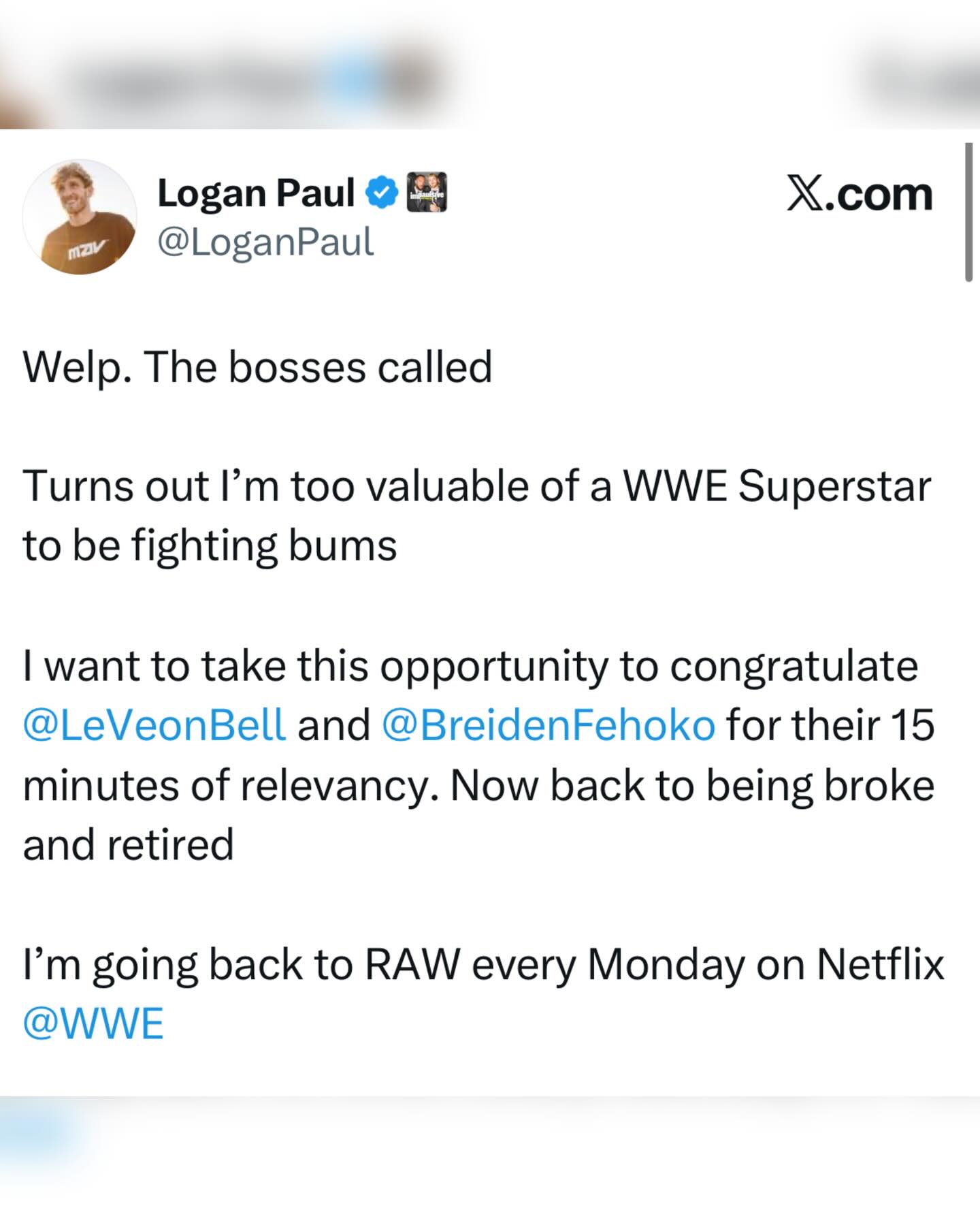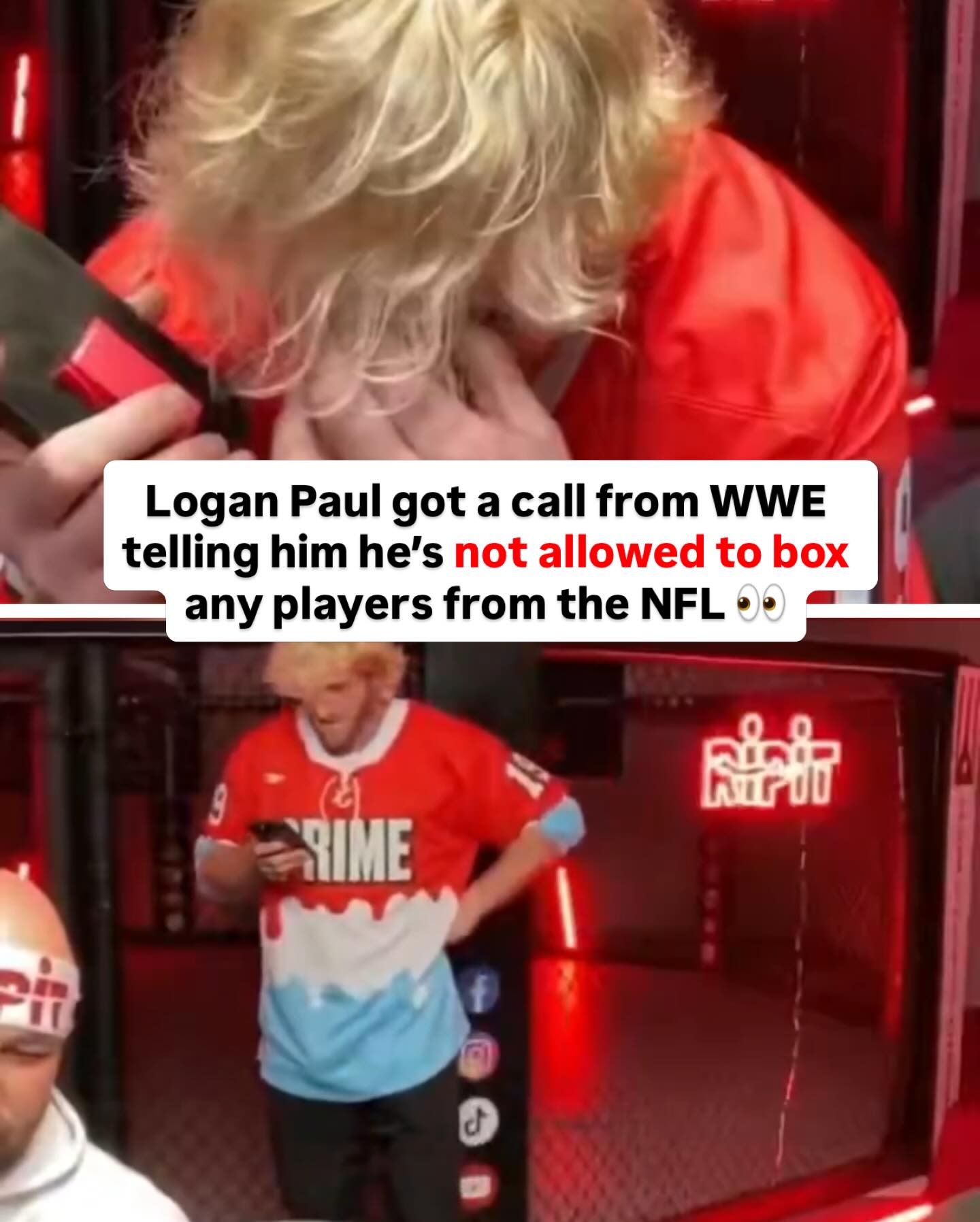 Logan Paul got the call from the WWE telling him to shut down his boxing challenge to football players ๐ [via @loganpaul]