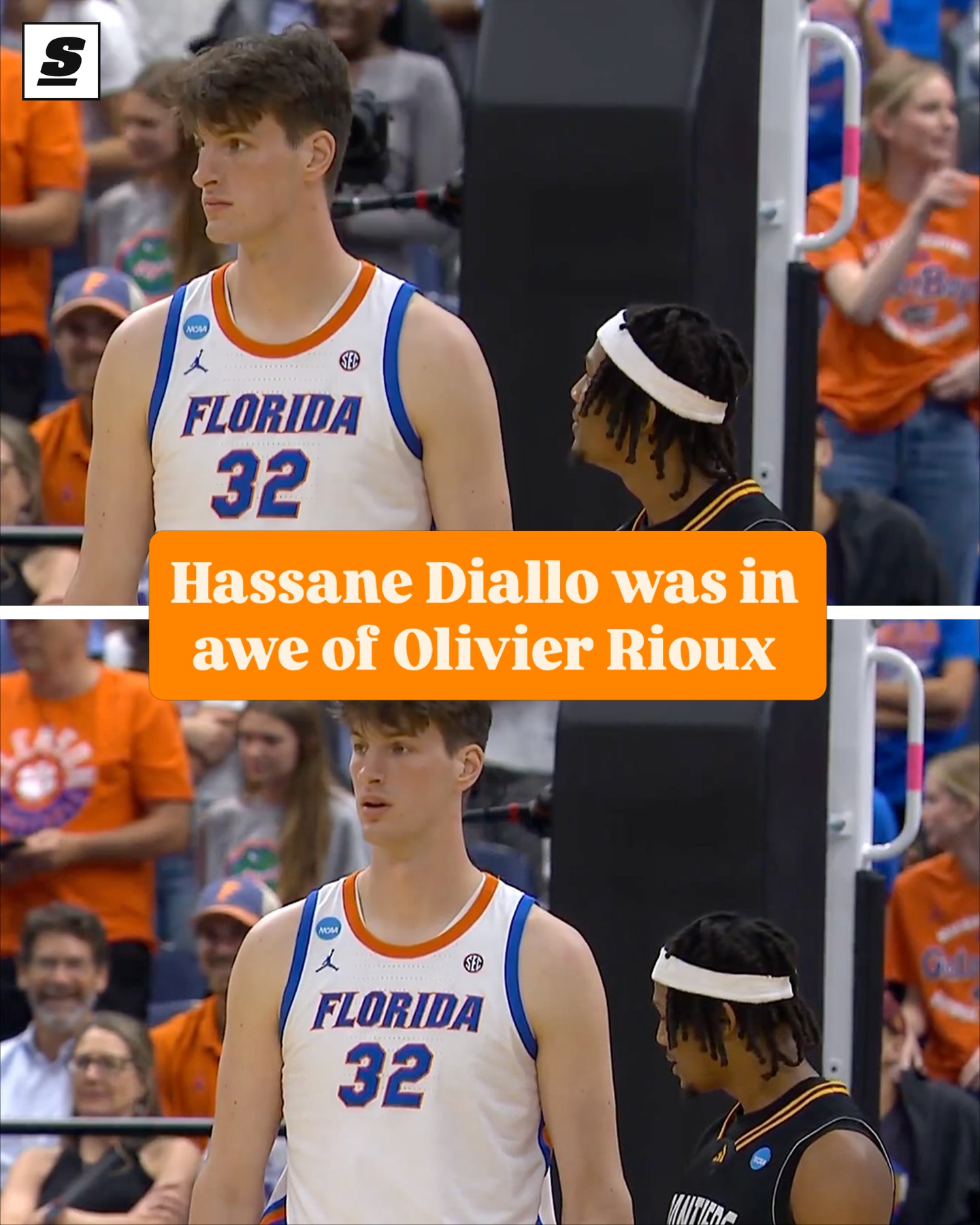6’8” Hassane Diallo couldn’t believe his eyes while standing next to 7’9” Olivier Rioux. 😅 [via X/Reba21_12]