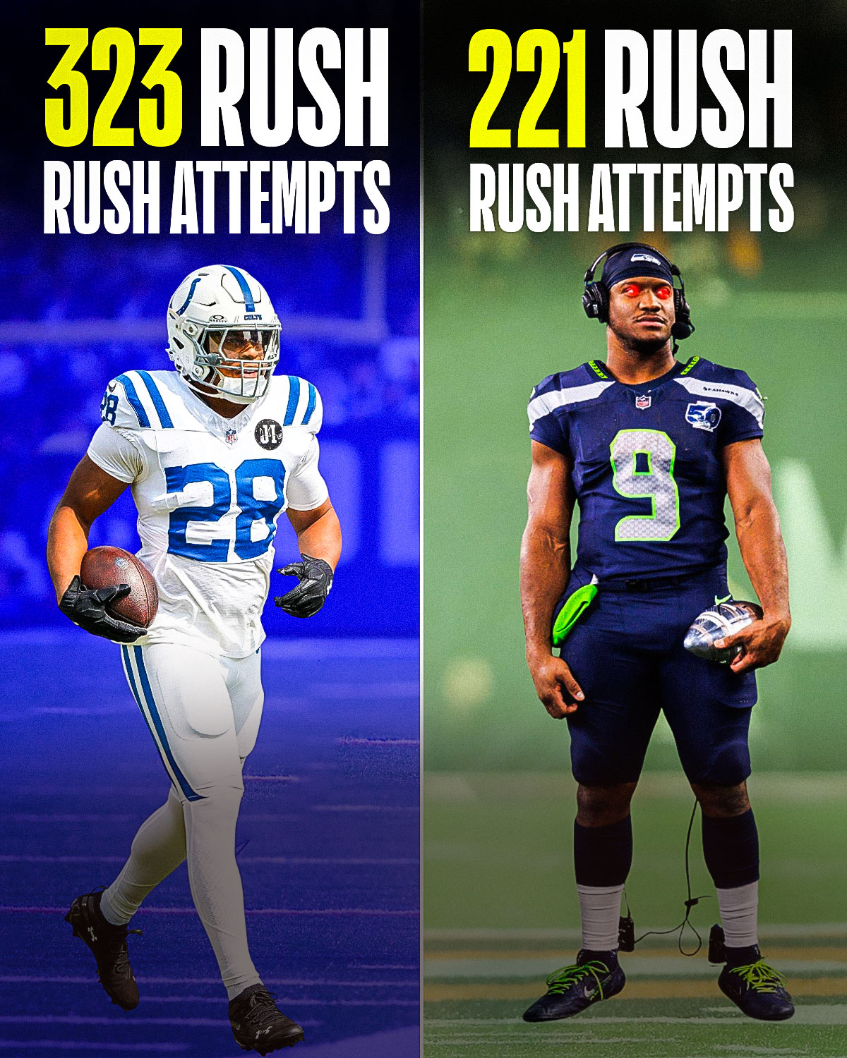On the other hand, Jonathan Taylor led the league with a massive 323 carries.