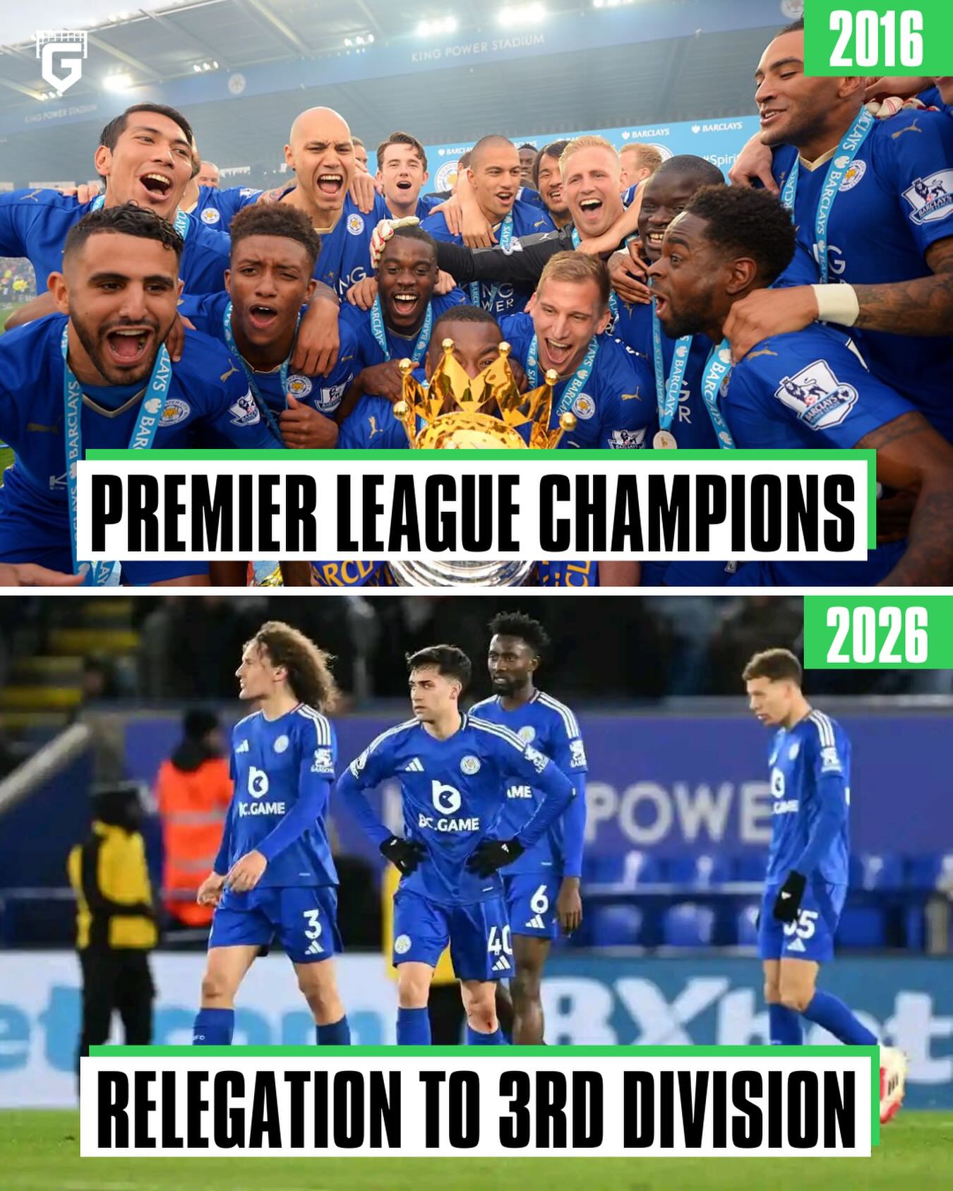 Leicester City are on the brink of relegation down to the third tier of Englsih football, having won only 10 matches out of the 36 played 🦊💔