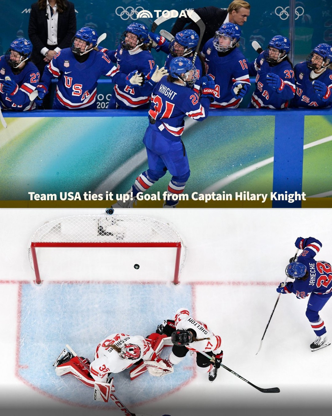 With just over 2 minutes left, Team USA captain Hilary Knight ties the gold medal game with Team Canada, we’re going into OT on @NBC and @peacock.