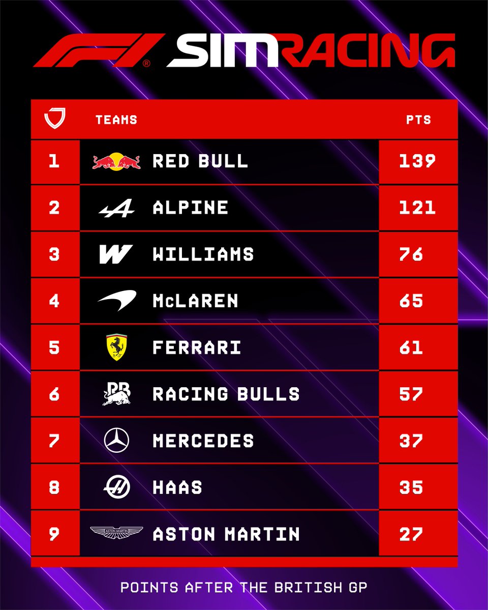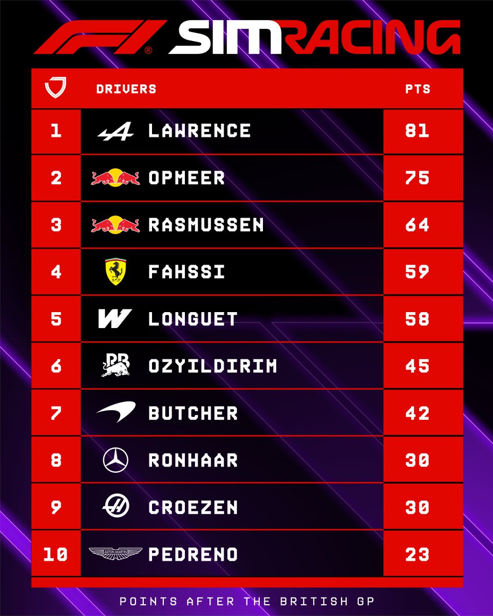 The provisional #F1Esports Standings are IN! π Otis Lawrence leads the Drivers' Standings after Round 6, but it's Red Bull at the top of the Teams' Standings π #F1