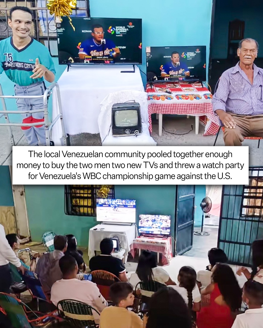 The local community came together to buy them a new TV and threw a watch party with them—and they got to see Venezuela upset the U.S. for the championship at it 🇻🇪