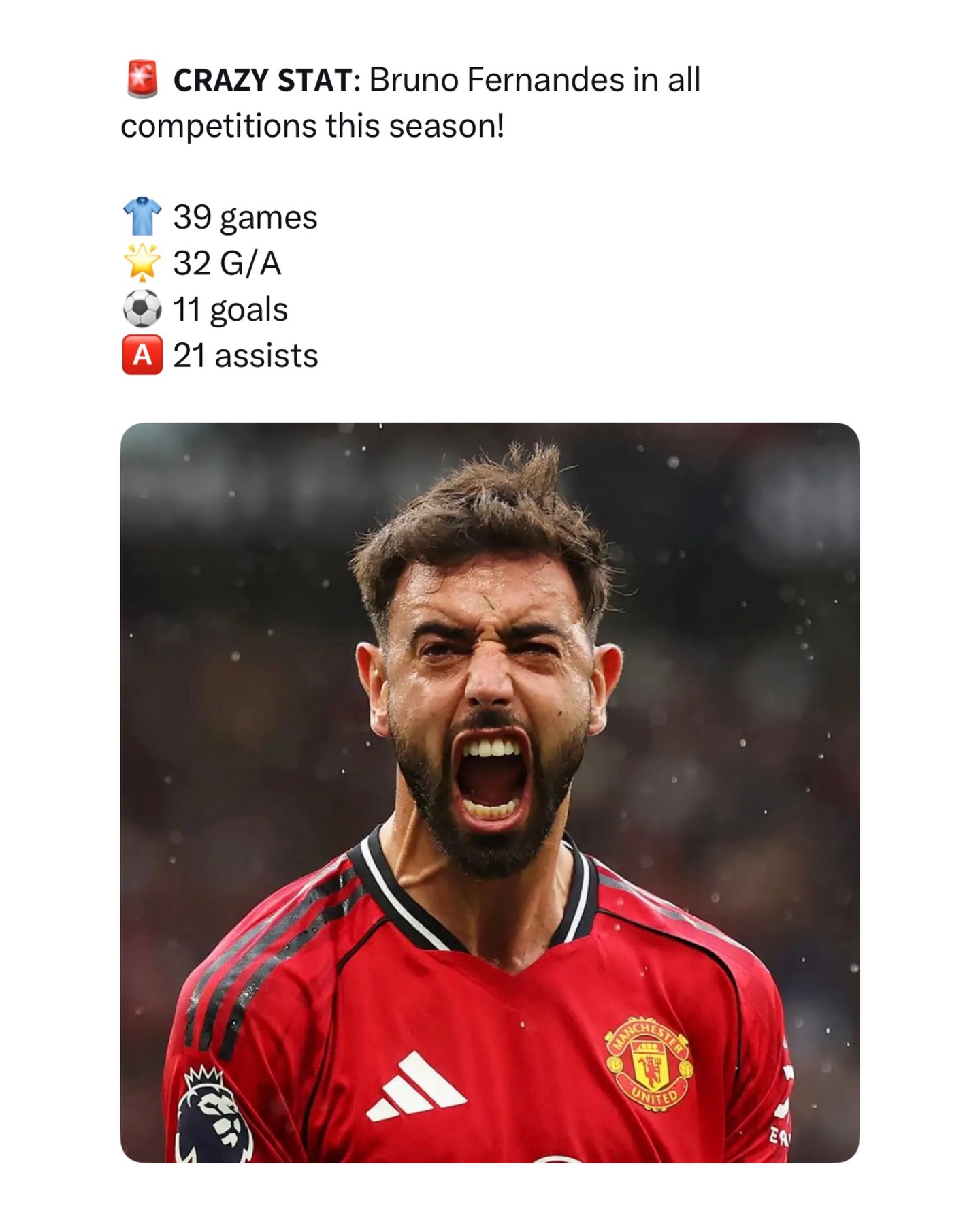 ππ΅πΉ Bruno Fernandes reaches 18 assists in the Premier League this season.