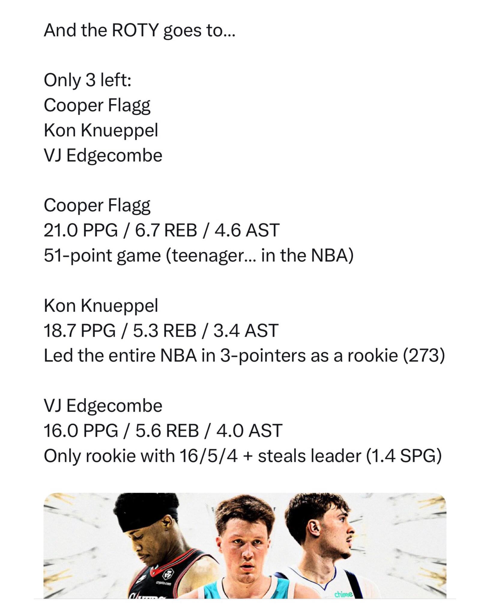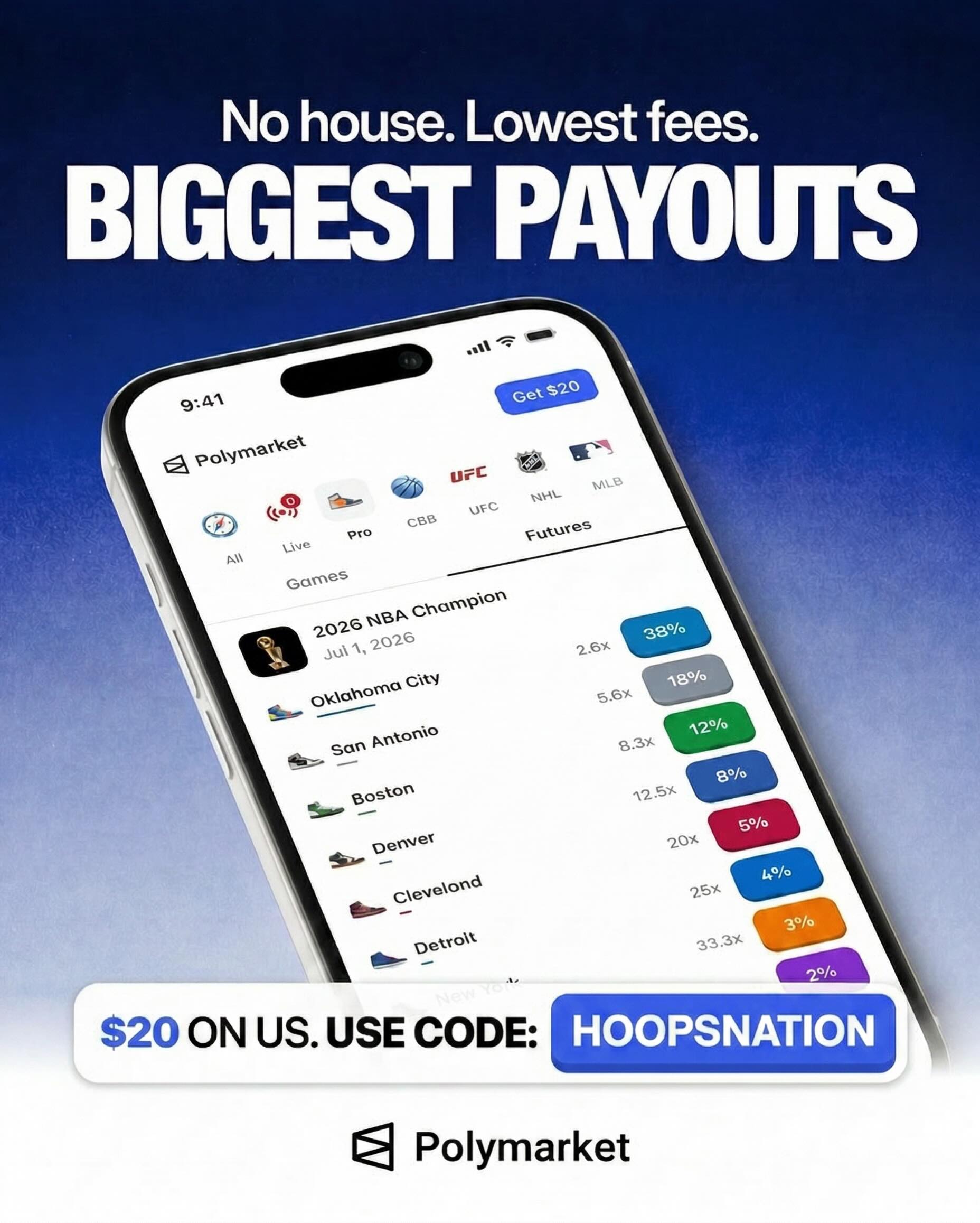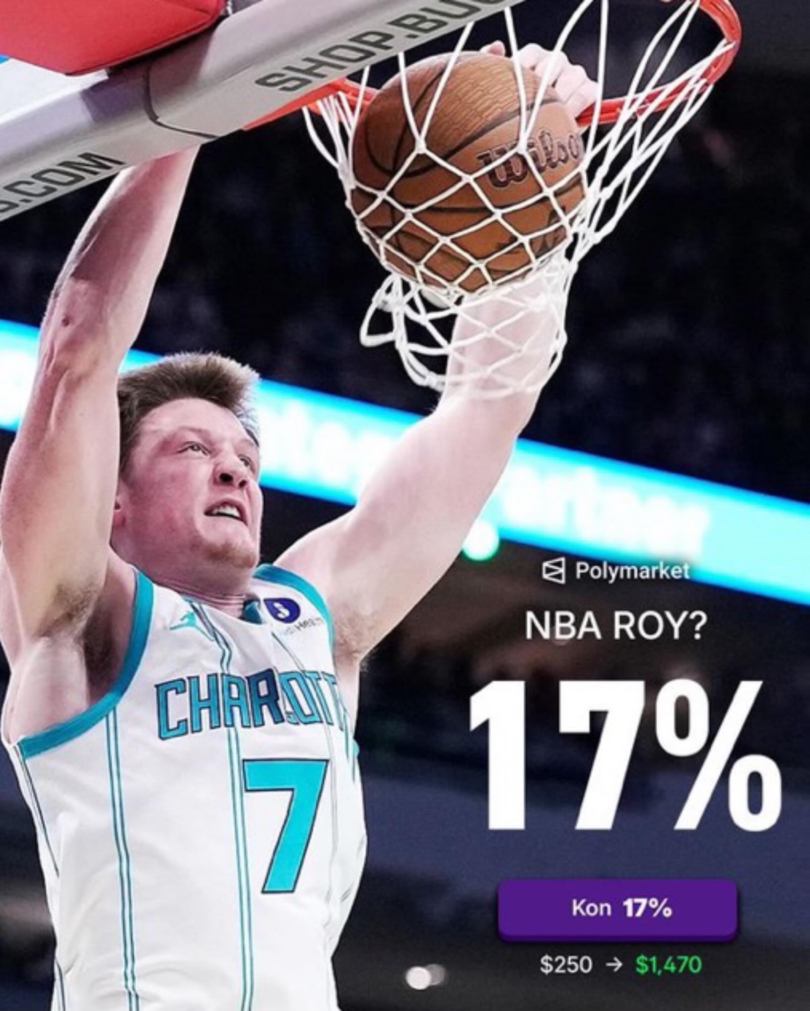 Who wins the ROTY tonight? π Cooper Flagg now has an 83% chance to win the award. Polymarket is giving away $20 free with code HOOPSNATION π