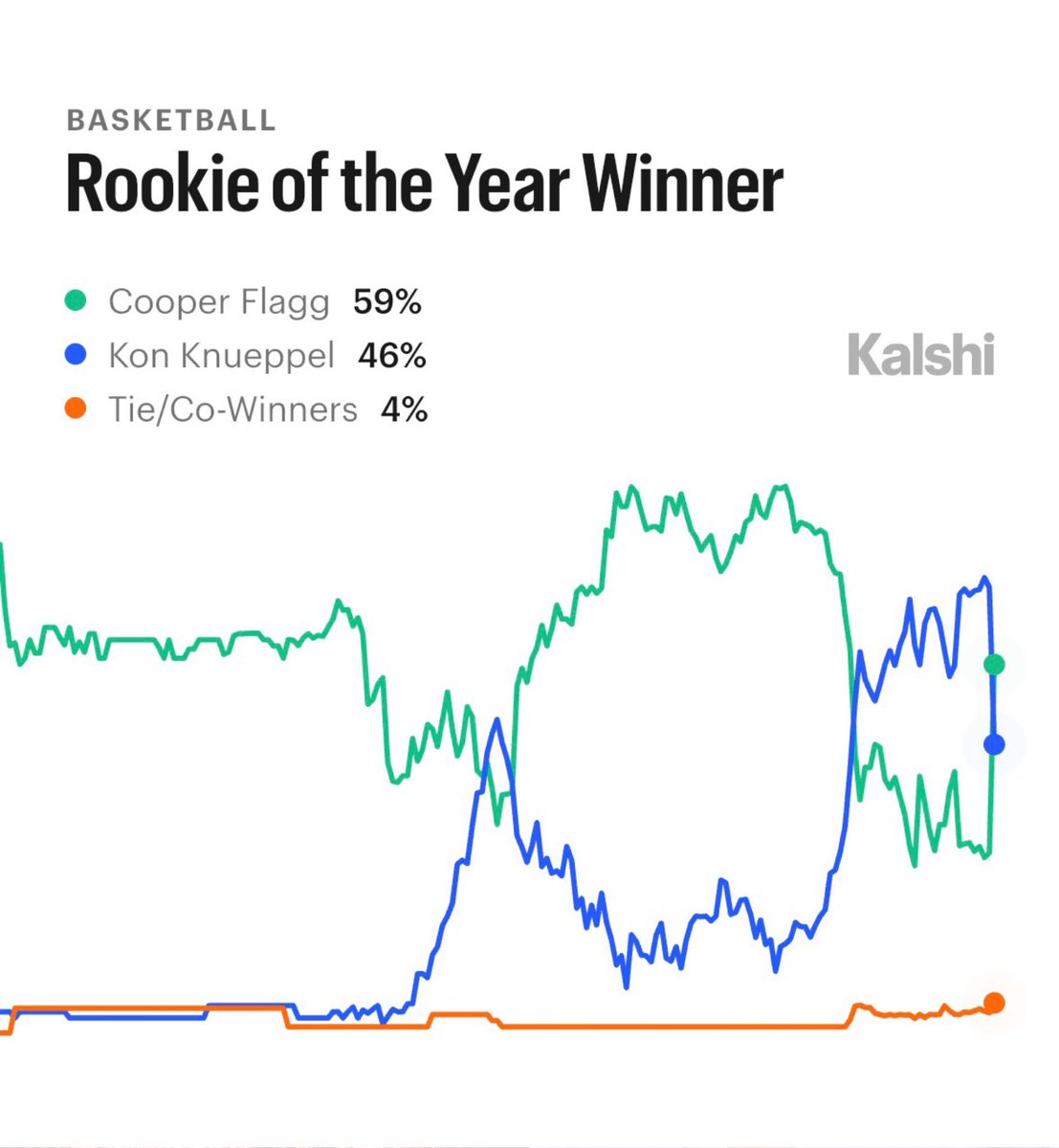 BREAKING: Cooper Flagg has passed Kon Knueppel as the ROTY favorite on Kalshi.