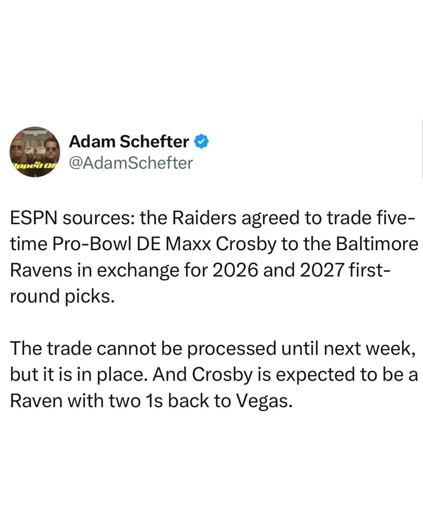 Maxx Crosby is now a Baltimore Raven 🤯 (Via: @adamschefter)