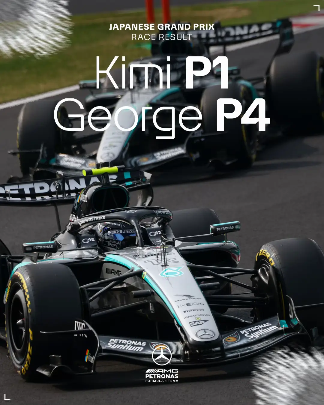 KIMI WINS THE JAPANESE GRAND PRIX! ๐๐บ๐ฏ๐ต A second F1 victory for Kimi and the Teamโs third of 2026. P4 for George after bad luck with the Safety Car #mercedesf1 #formula1 #f1 #kimiantonelli