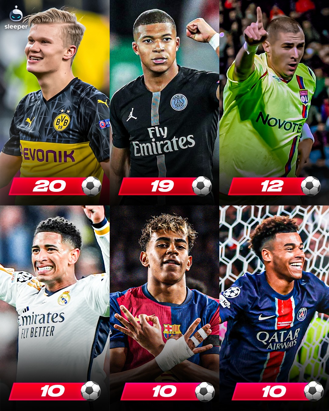 He’s now in the company of Erling Haaland and Kylian Mbappe for 10+ Champions League goals scored under 21 years old. 🤝