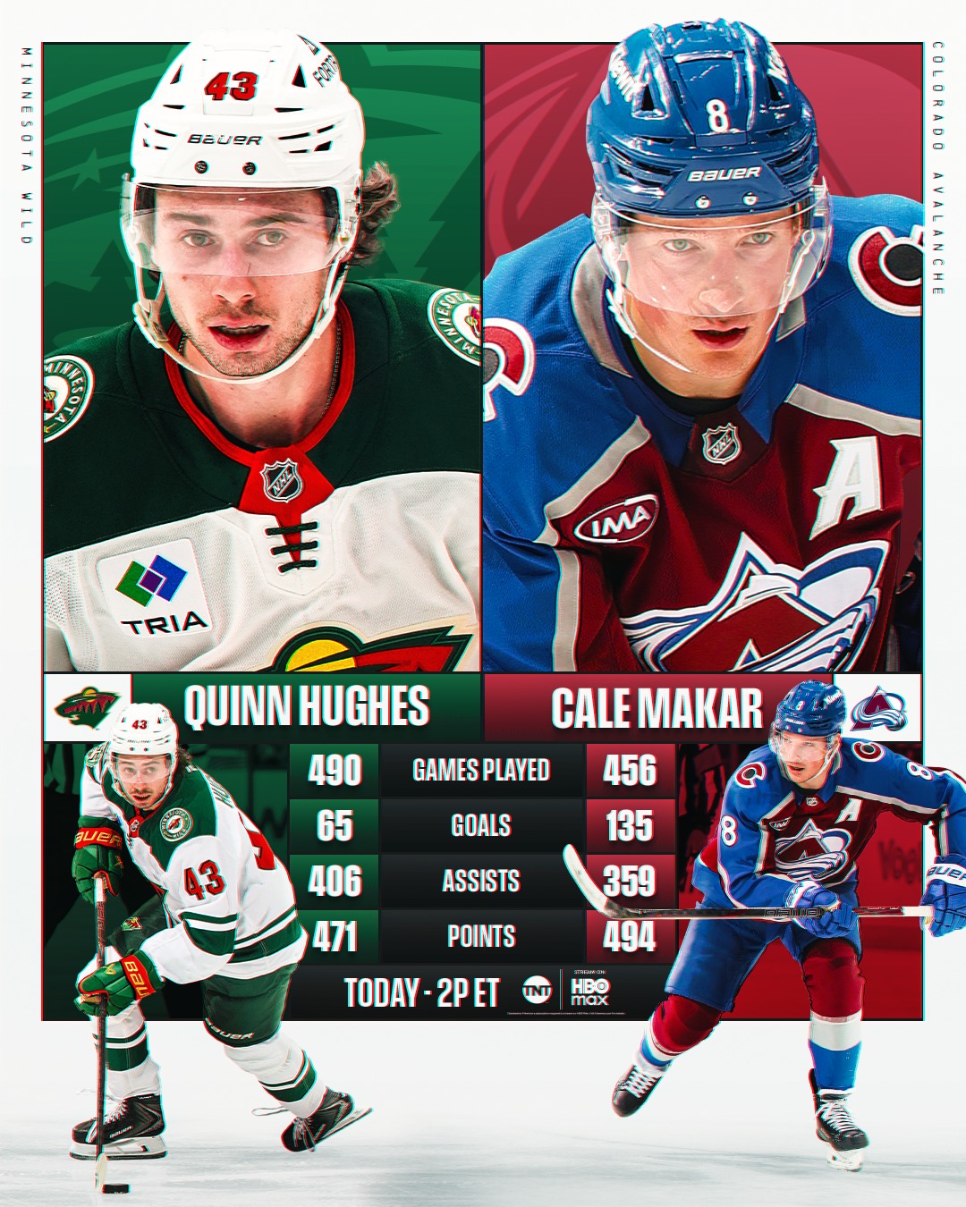 Watch the @coloradoavalanche host the @minnesotawild at 2p ET on @nhlontnt & @hbomax