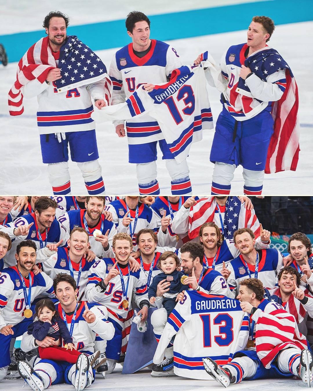 Meredith Gaudreau, the widow of professional hockey player Johnny Gaudreau, showed her appreciation for Team USA celebrating her husband and their children after winning Olympic gold ❤️ (via @ABC News) #hockey #olympics #winterolympics