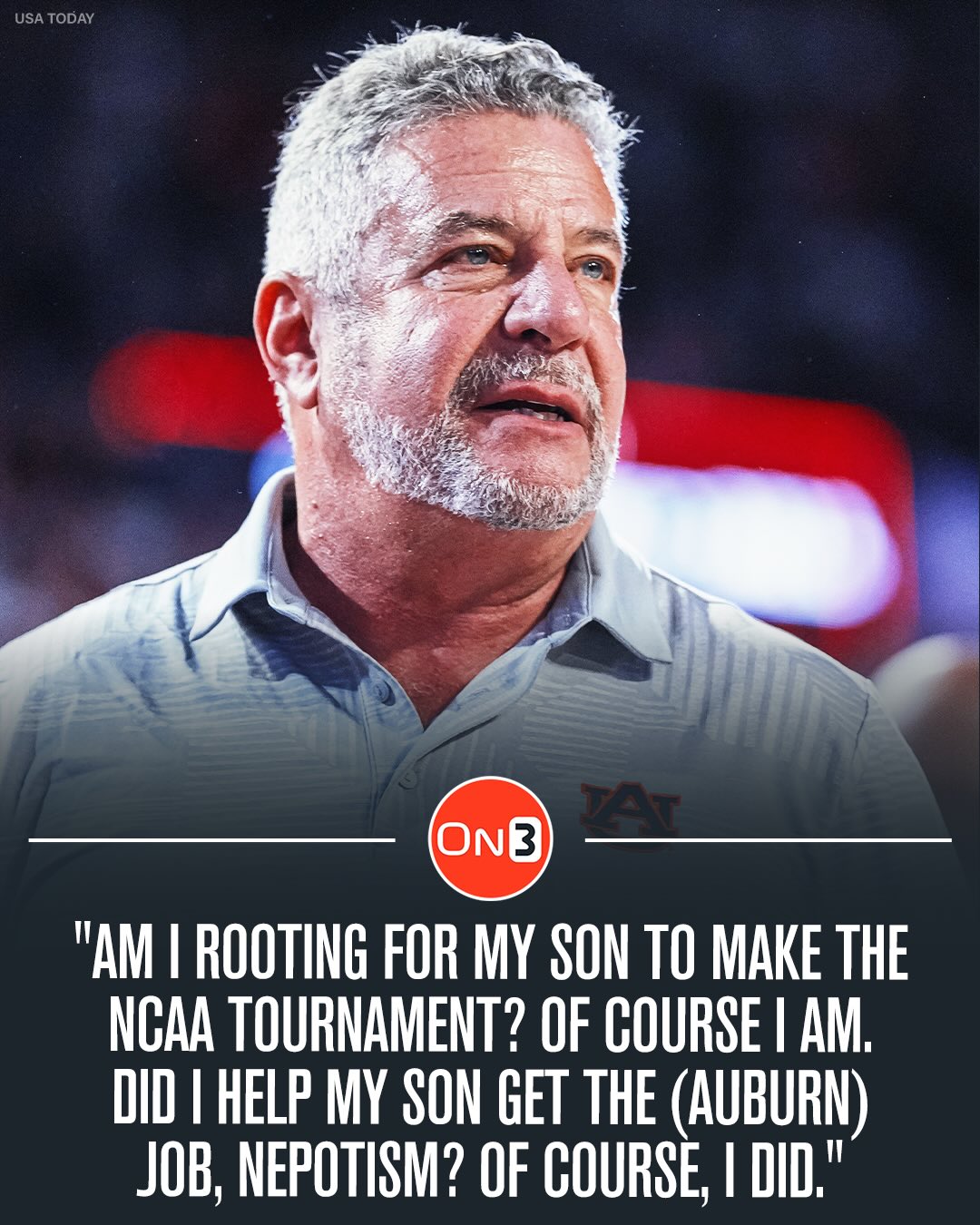 Bruce Pearl on Auburn and his son Steven sitting on the NCAA tournament bubble. (via @dontatmedd) Follow @On3 for the BEST of College Sports