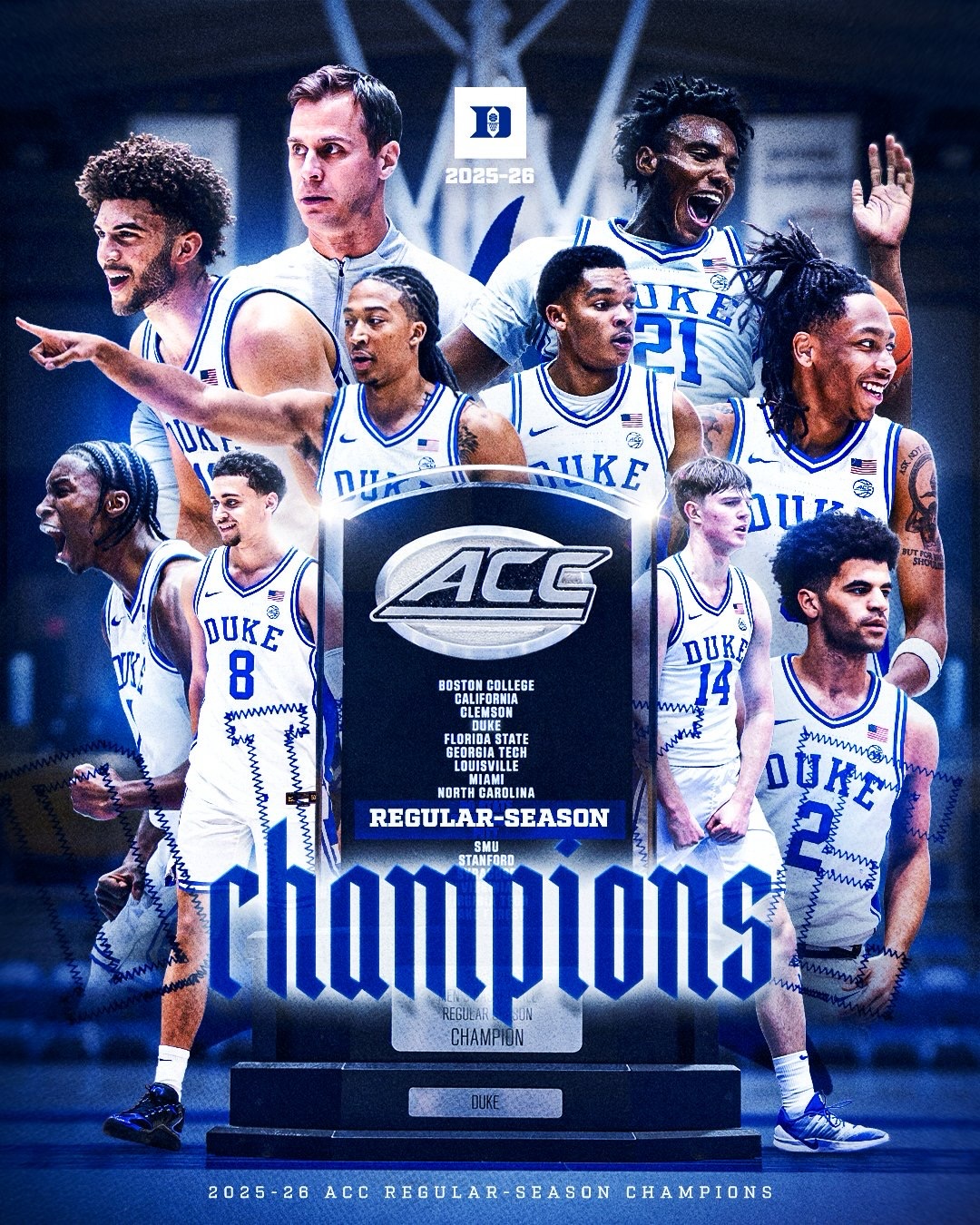 The Blue Devils have been running the ACC ๐ Duke has won back-to-back ACC regular season titles Thoughts? โฌ๏ธ (h/t @jon.rothstein)