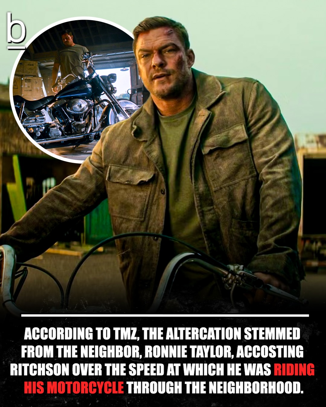According to TMZ, the altercation stemmed from the neighbor, Ronnie Taylor, accosting Ritchson over the speed at which he was riding his motorcycle through the neighborhood.