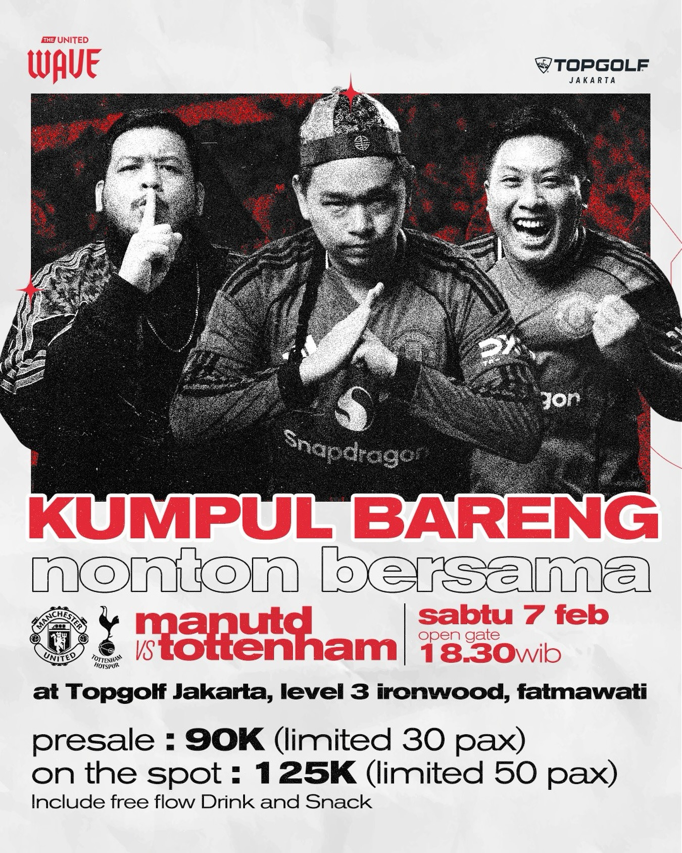 Instagram The United Wave dan sudah termasuk FREEFLOW snack & drink.