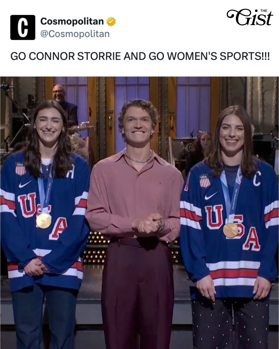 Connor Storrie is in his host era! 🎀✨⁣⁣ ⁣⁣ Storrie took over Saturday Night Live on Feb. 28, and turned his monologue into a full-on Team USA hockey celebration. πŸ‡ΊπŸ‡ΈπŸ’β£β£ ⁣⁣ Fresh off their Olympic moment, U.S. hockey stars joined him on stage for a surprise cameo that had the crowd buzzing and the internet instantly clipping. 🎬πŸ”₯⁣⁣ ⁣⁣ From sports drama king to late-night frontman? The range. πŸ‘β£β£ ⁣⁣ #snl #teamusa #hockey #popculture